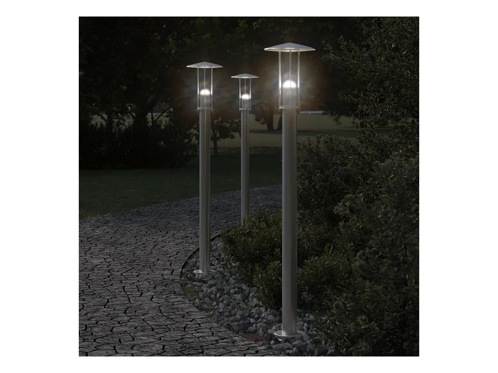 Lampadaires d'extérieur 3 pcs argenté 100 cm acier inoxydable FR833332