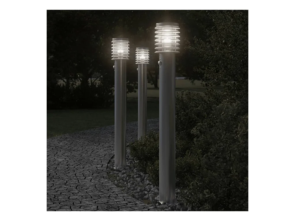 Lampadaires d'extérieur avec capteurs 3 pcs acier inoxydable FR849028