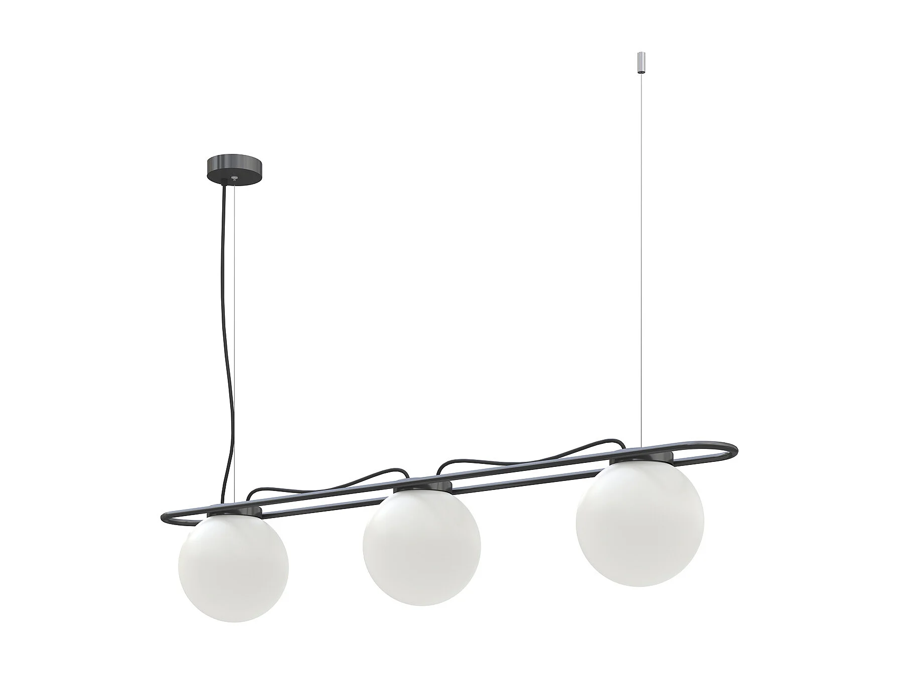 Plafonnier classic Oxy-h130cm x d.ø20cm-3x opale -e27 40w-ip40 -acier,noir