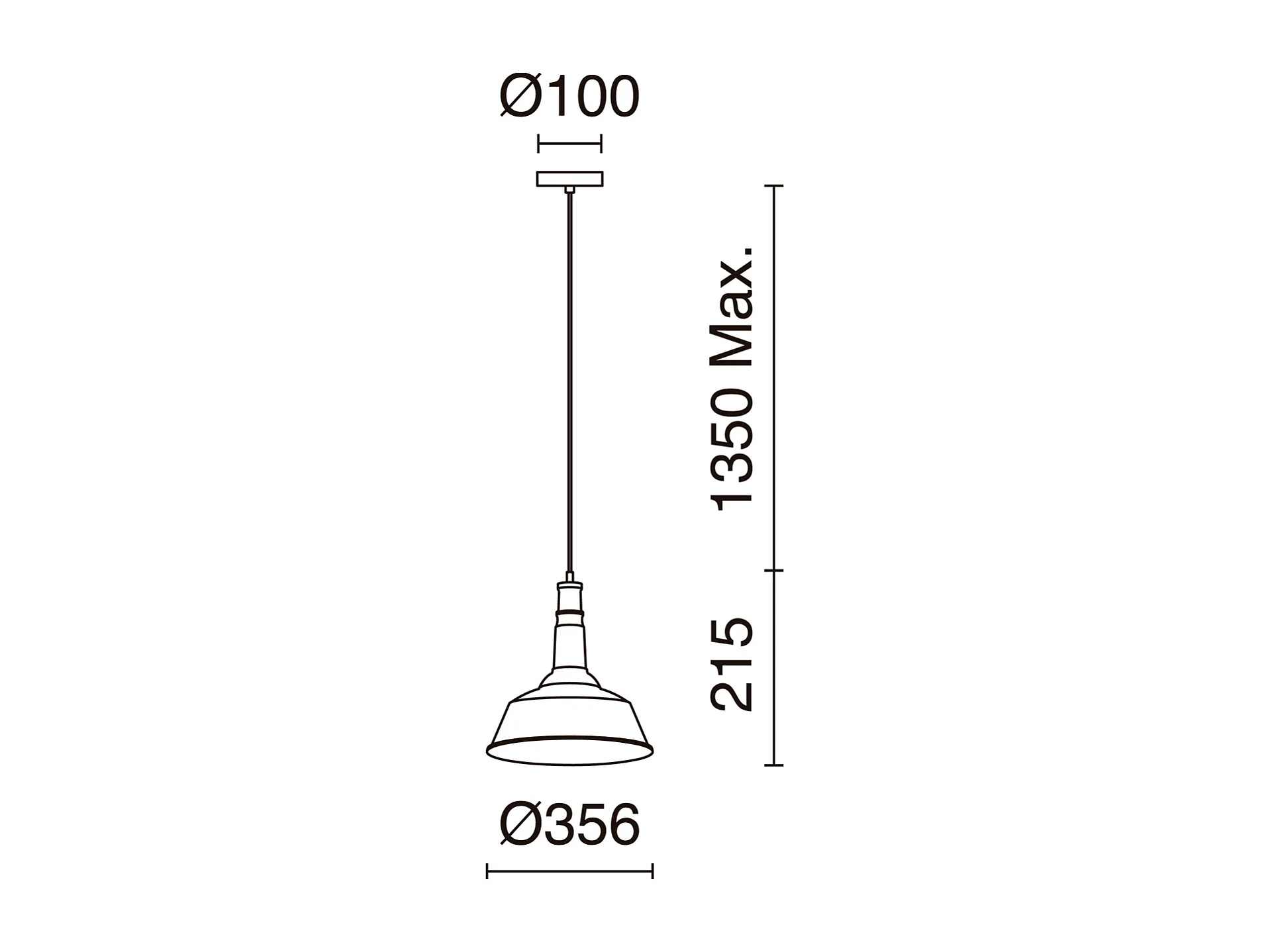 Plafonnier Vintage industriel-h135cm x d.ø35,6 cm-e27 60w-acier, noir-ip20