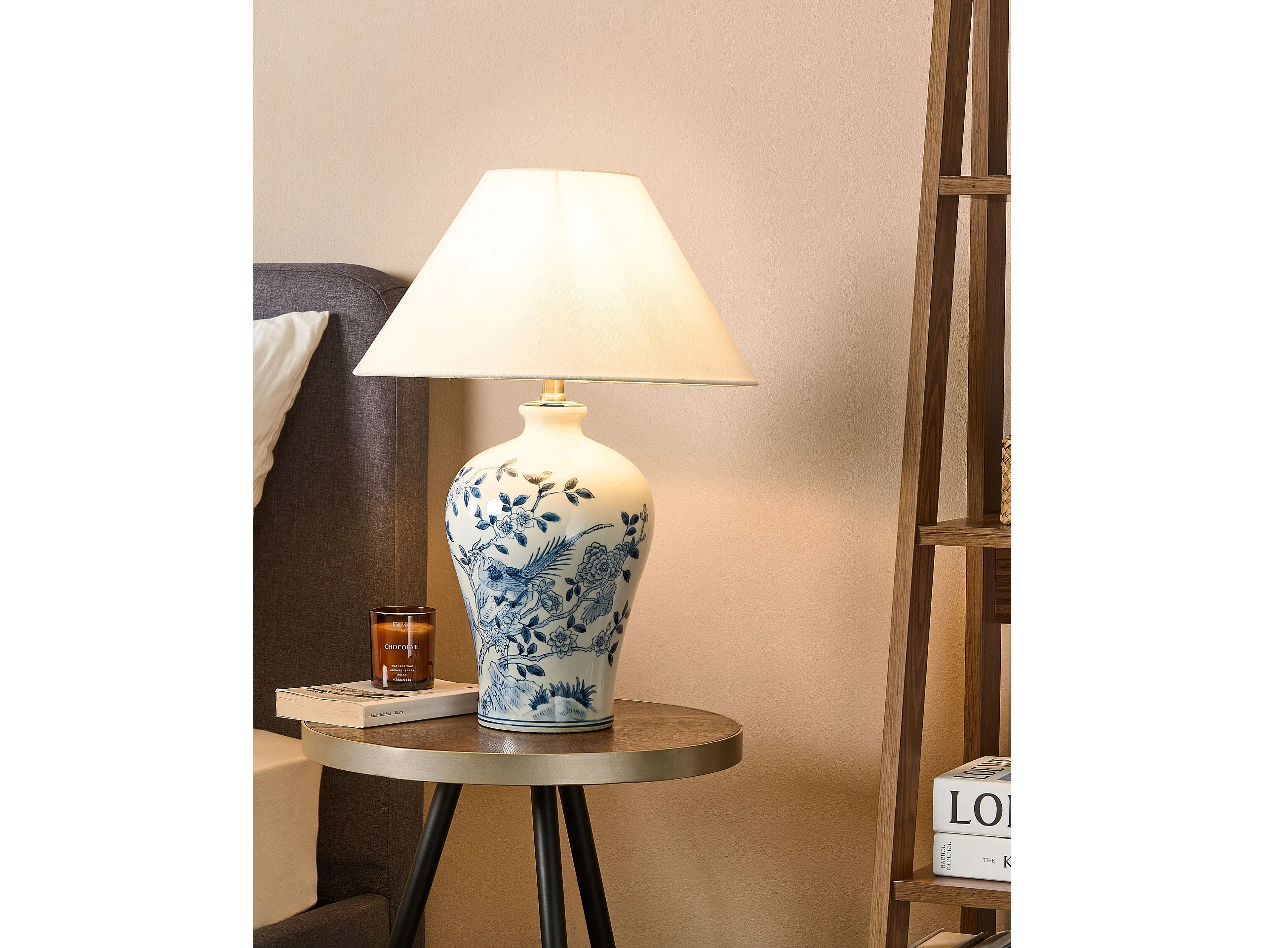 Lampe à poser MAGROS Porcelaine Blanc/bleu