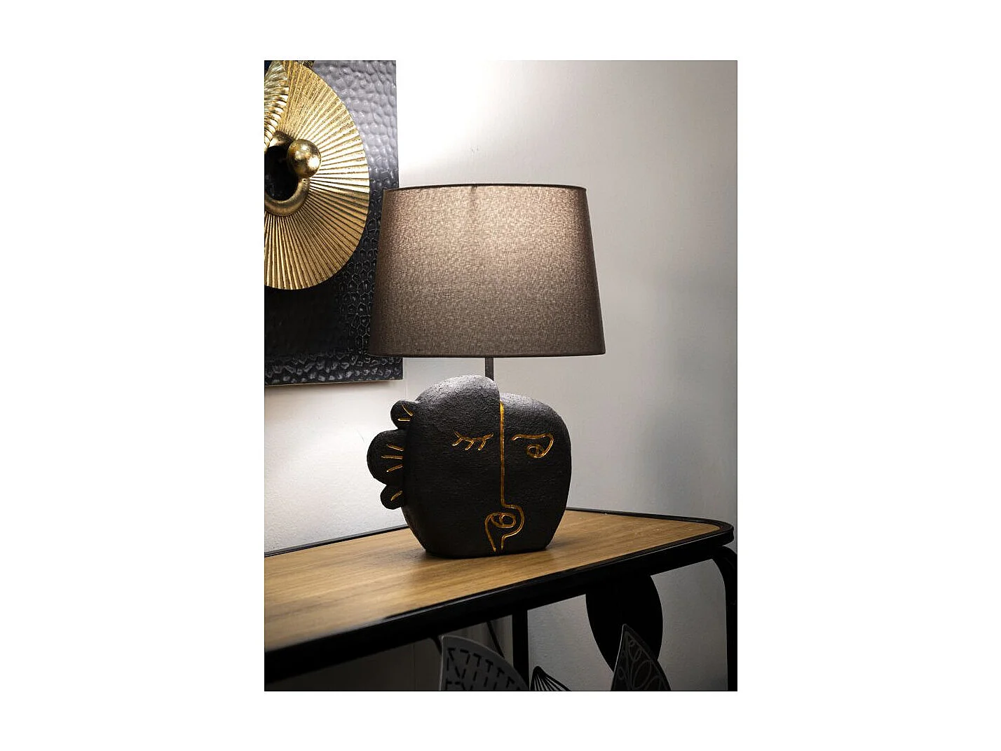 Lampe à Poser en Résine "Tribal" 39cm Marron