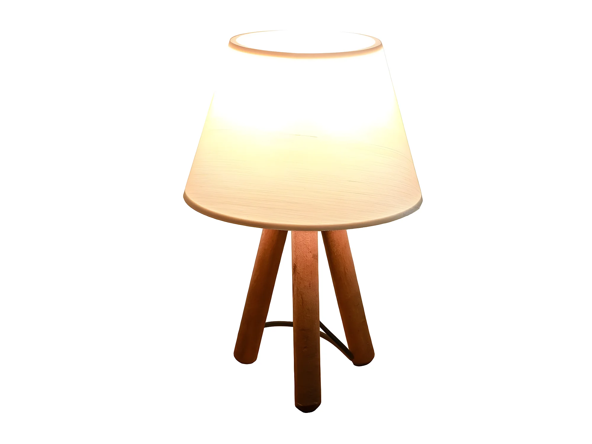 Lampe à poser trépied Laresma avec pieds en bois et abat-jour en tissu 1xE27 - Crème