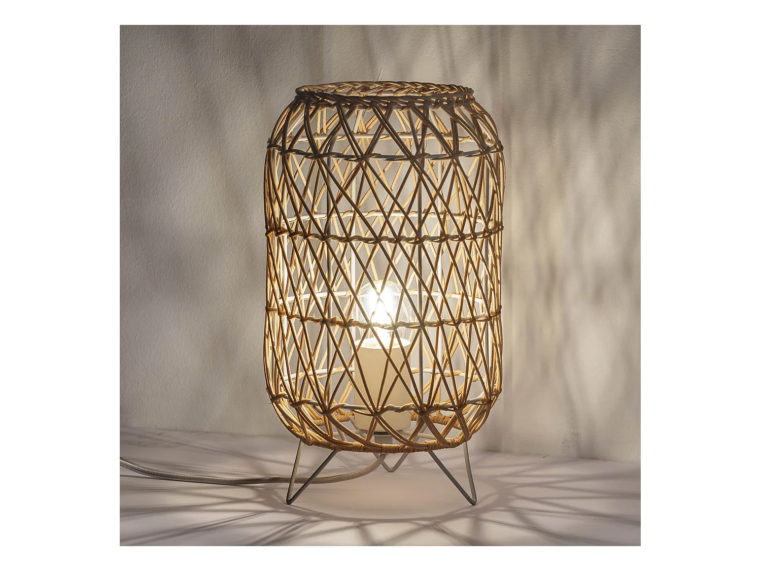 Lampe à poser Yoki en rotin naturel, diamètre 18,5 cm