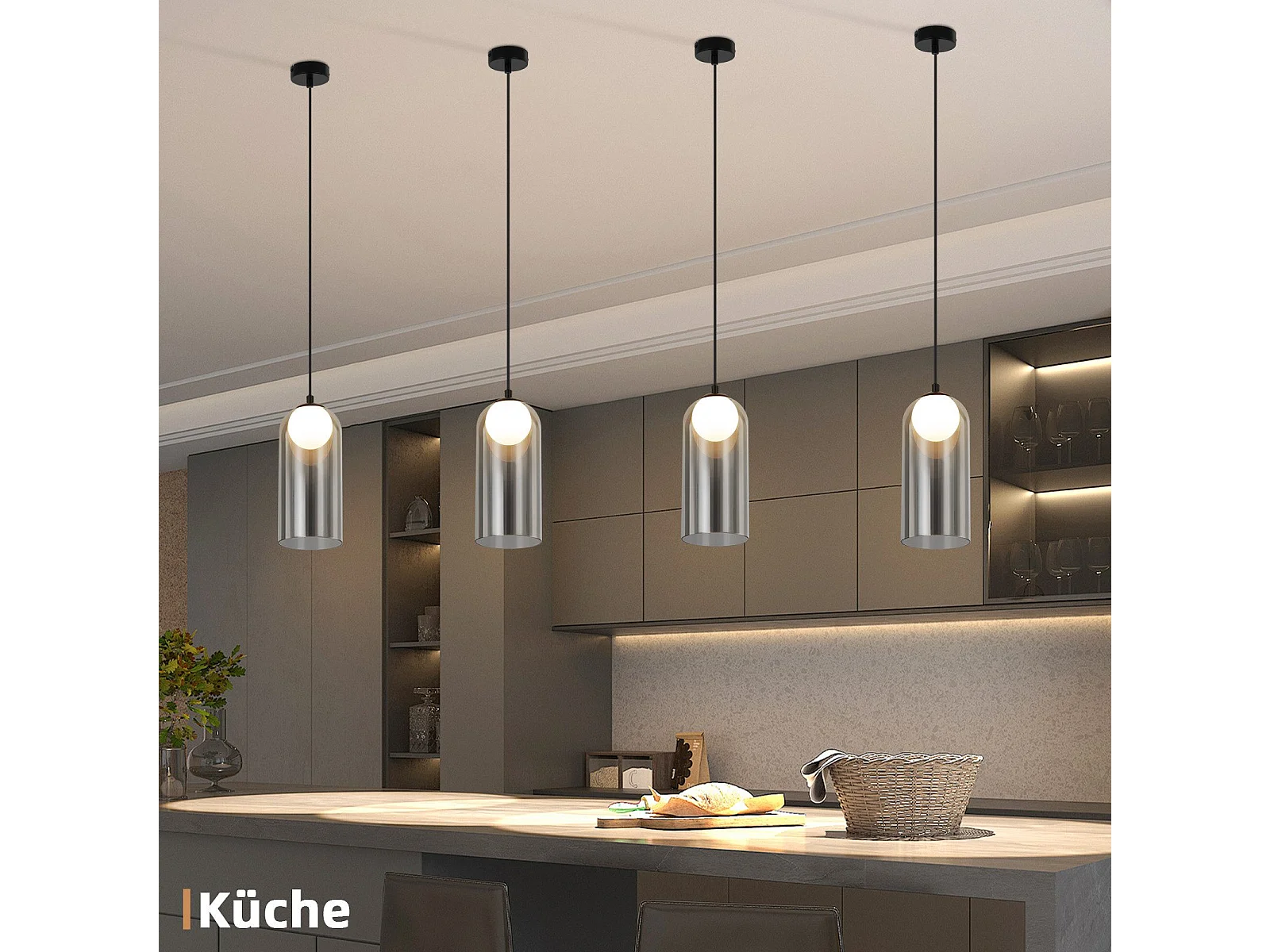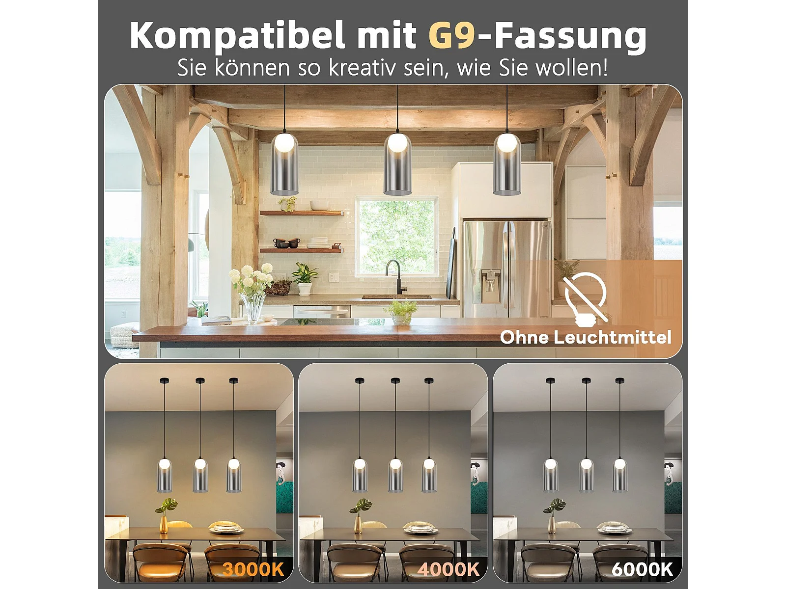 Lampe à Suspension 1er Vintage Pour Table à Manger, Gris Fumé, G9, Ovale, Hauteur Réglable, Pour Salon