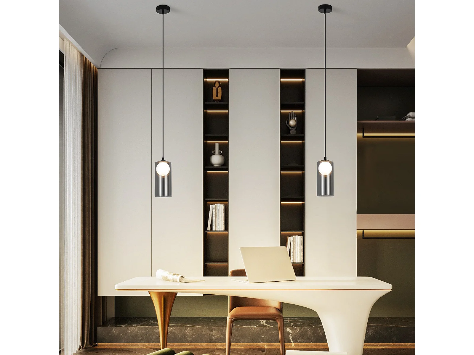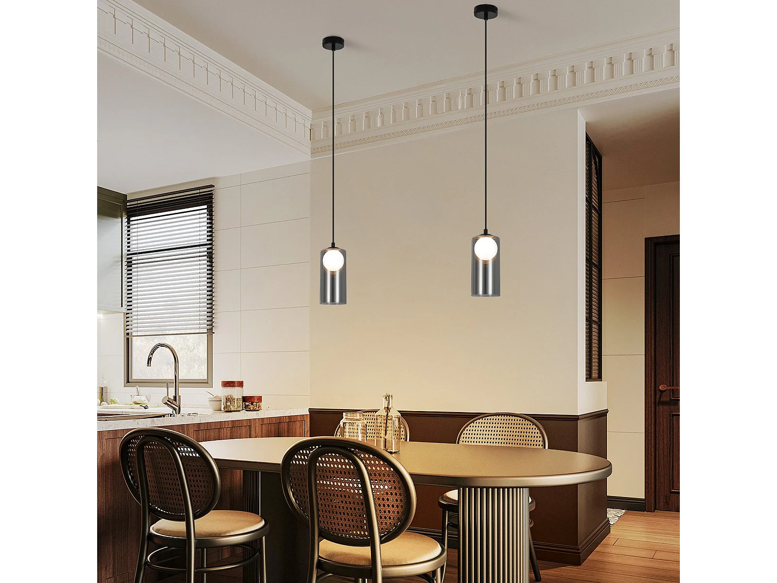 Lampe à Suspension 1er Vintage Pour Table à Manger, Gris Fumé, G9, Ovale, Hauteur Réglable, Pour Salon
