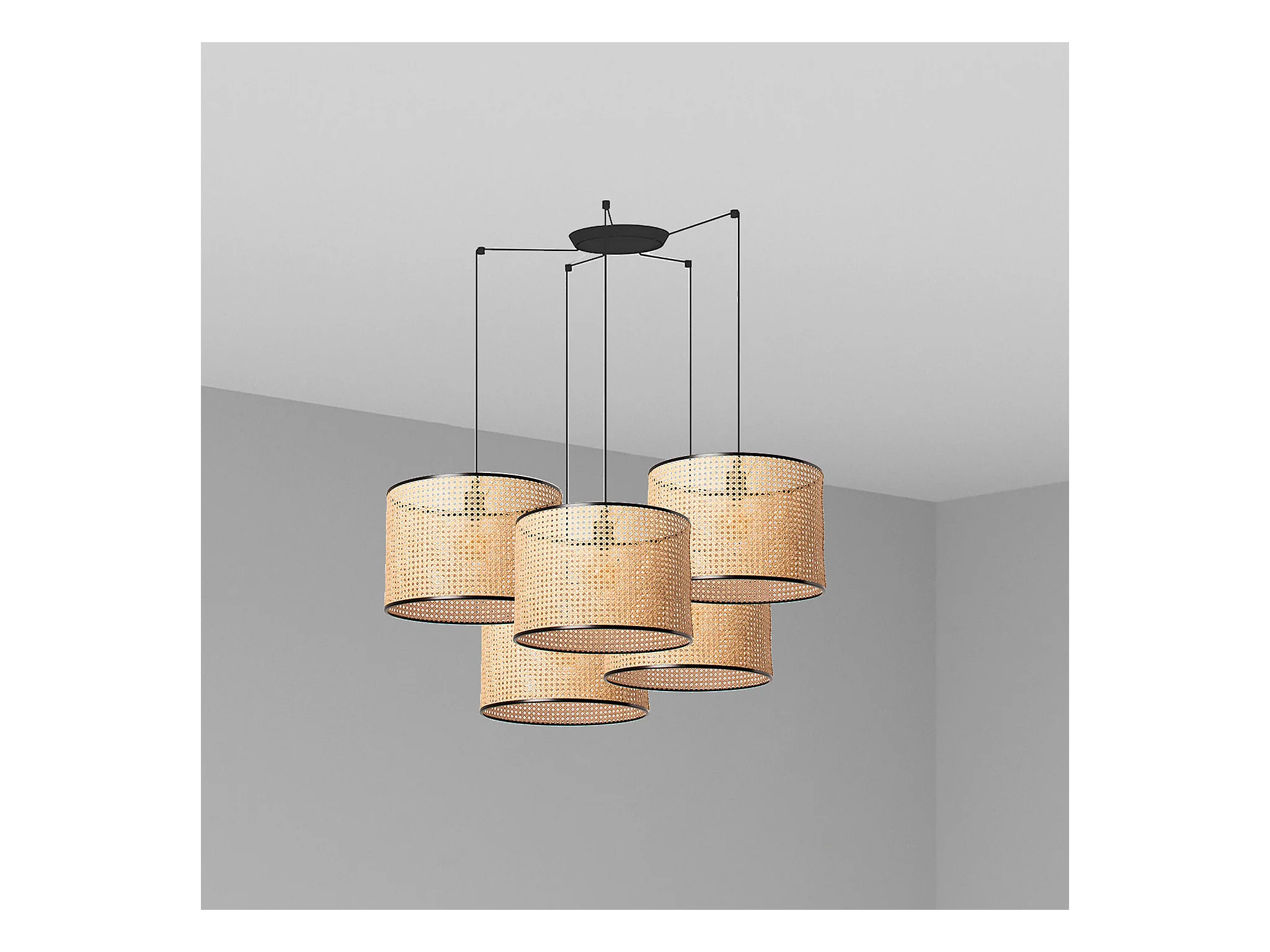 Lampe à suspension MAMBO 450 5L Noir/rotin