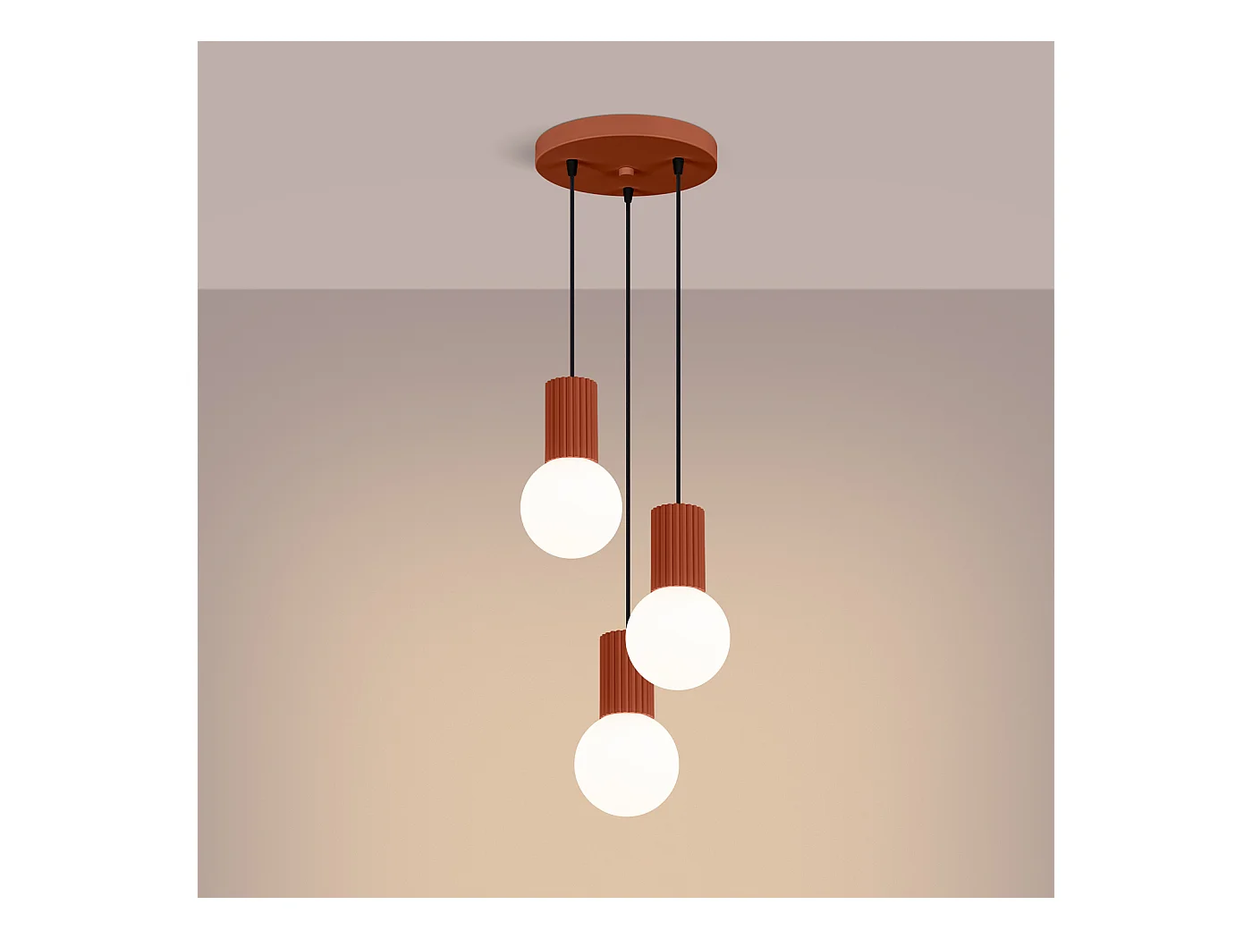 Lampe à suspension Brill moderne en acier - 3 sources lumineuses 4000K - L.30 x H.94 cm - ocre rouge