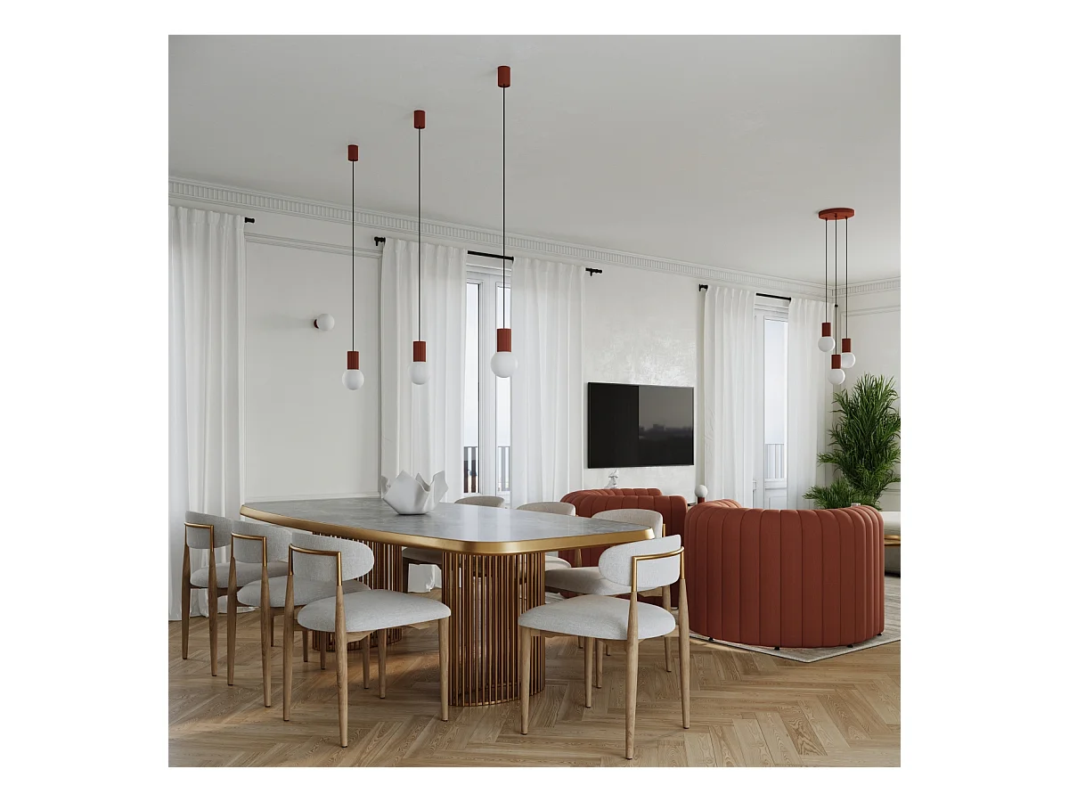 Lampe À Suspension Pastelo Moderne En Acier - 1 Sources Lumineuses - L.8 X H.114 Cm - Ocre Rouge