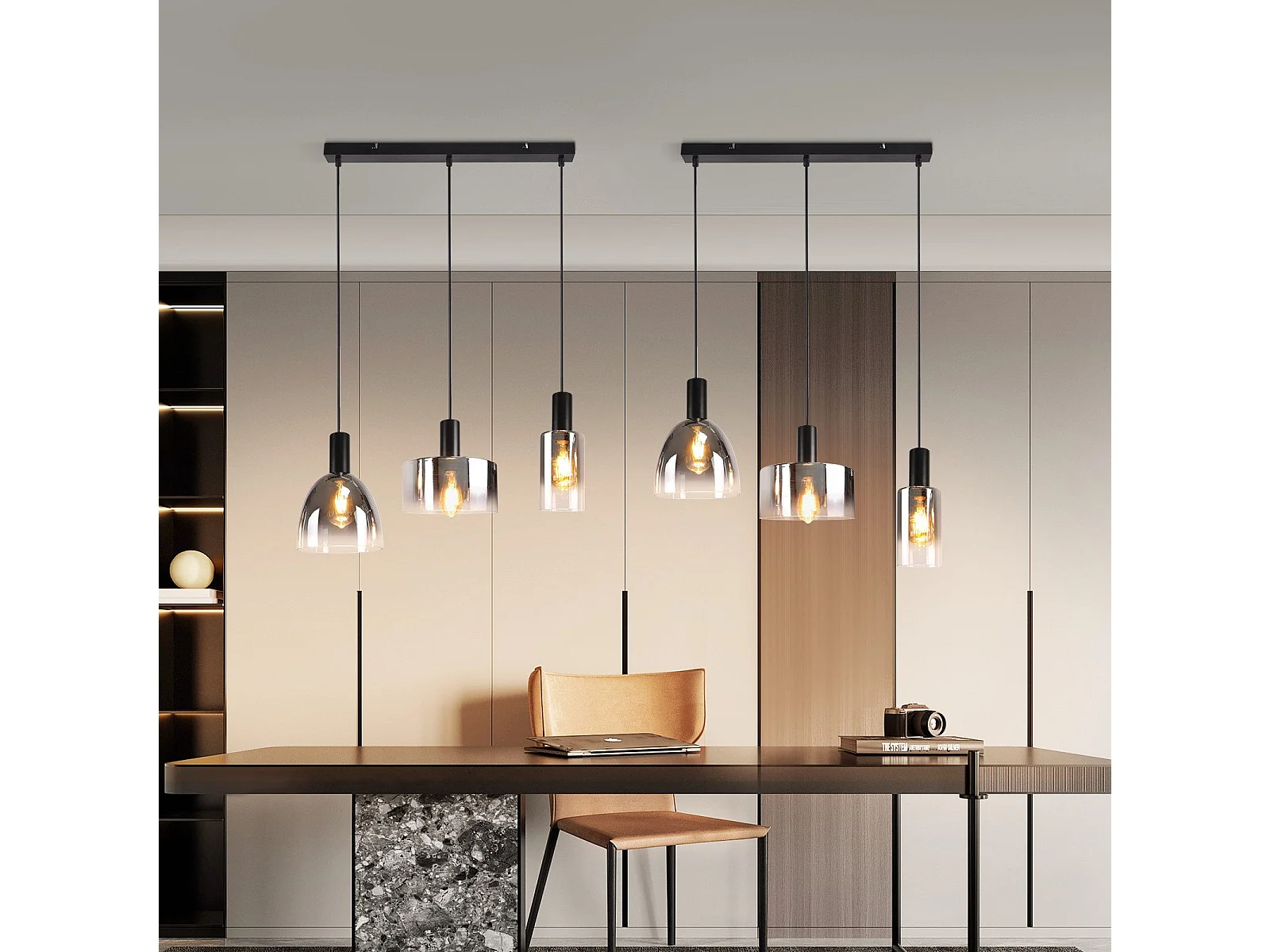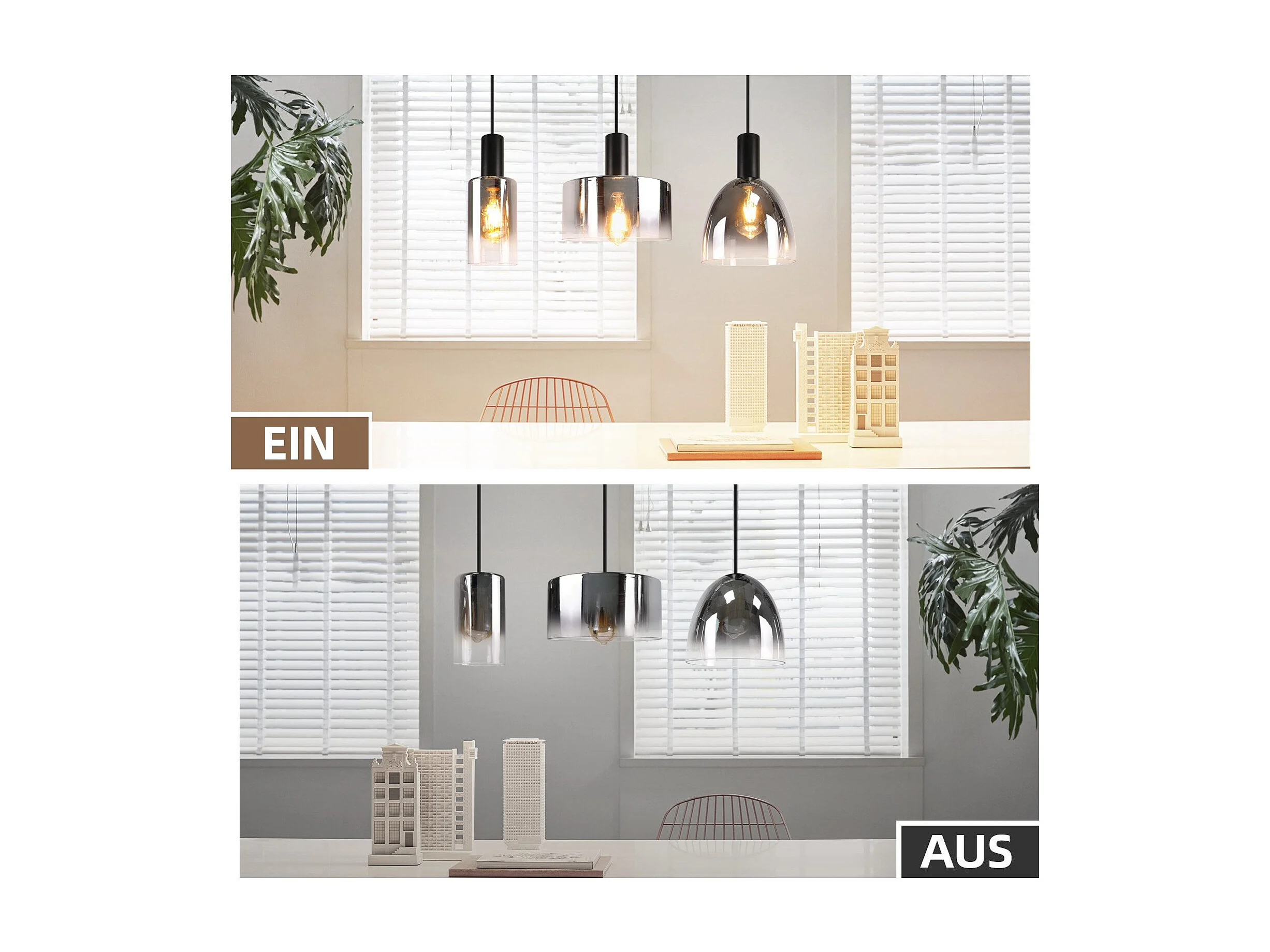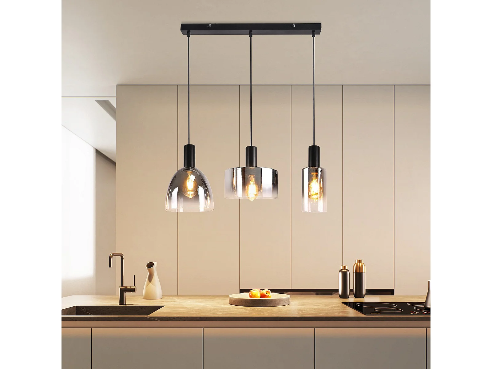 Lampe à Suspension Pour Table à Manger Vintage En Verre Gris Fumé E27 Réglable En Hauteur Pour Salon