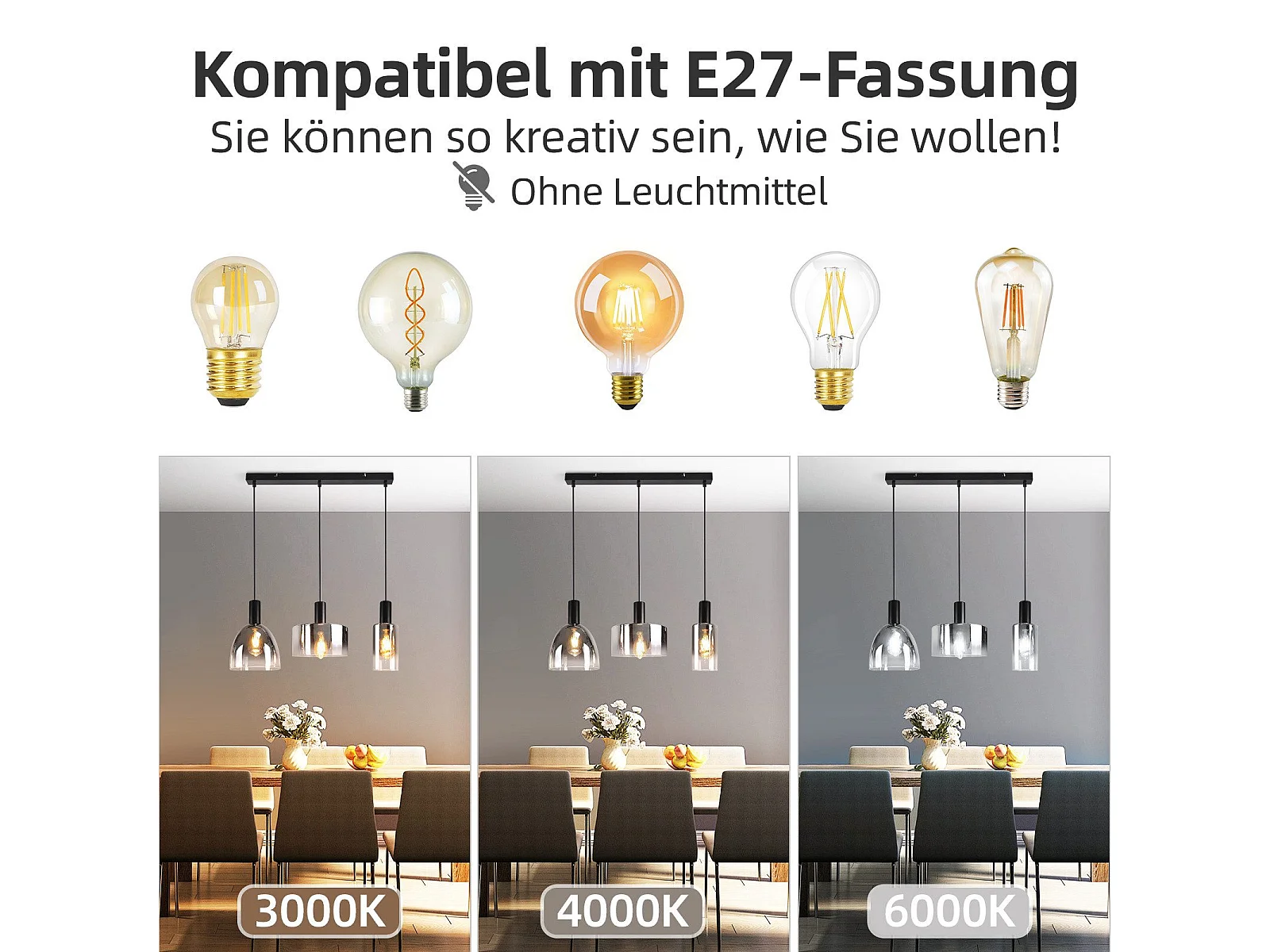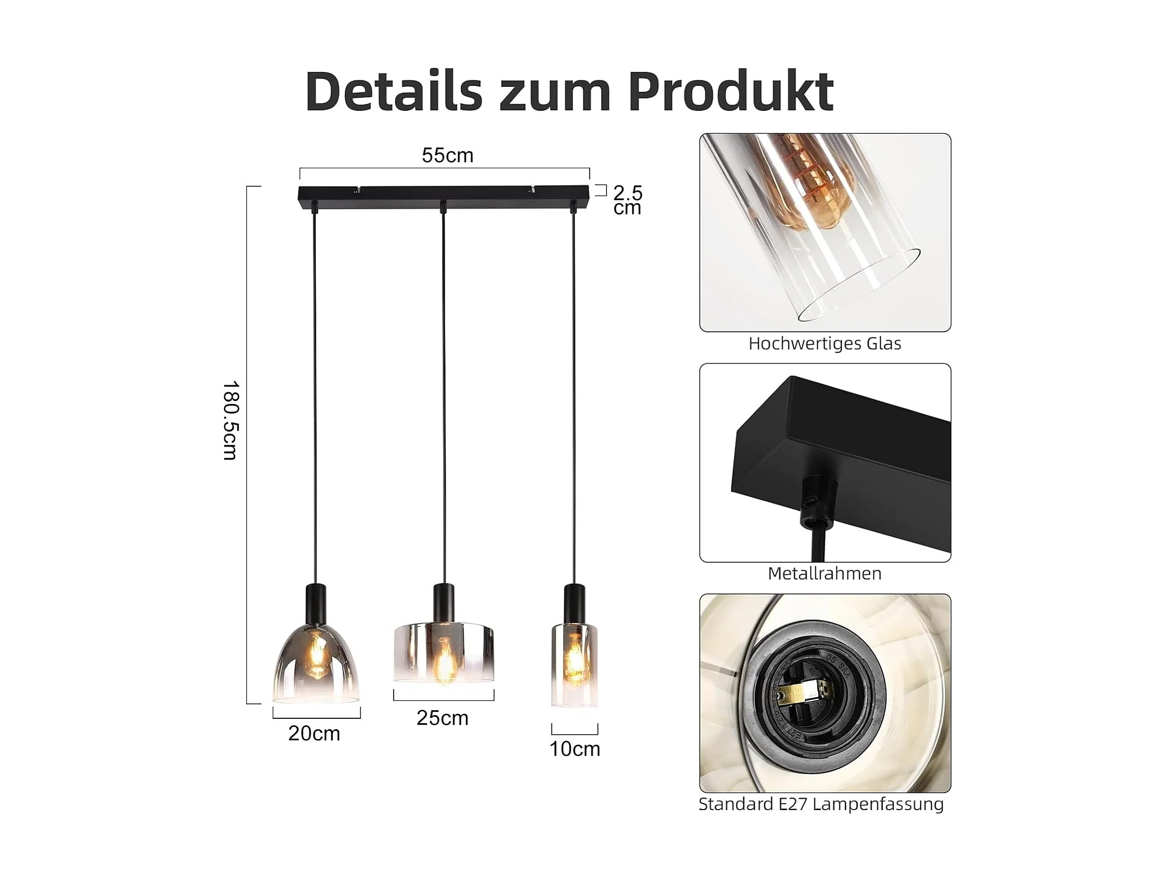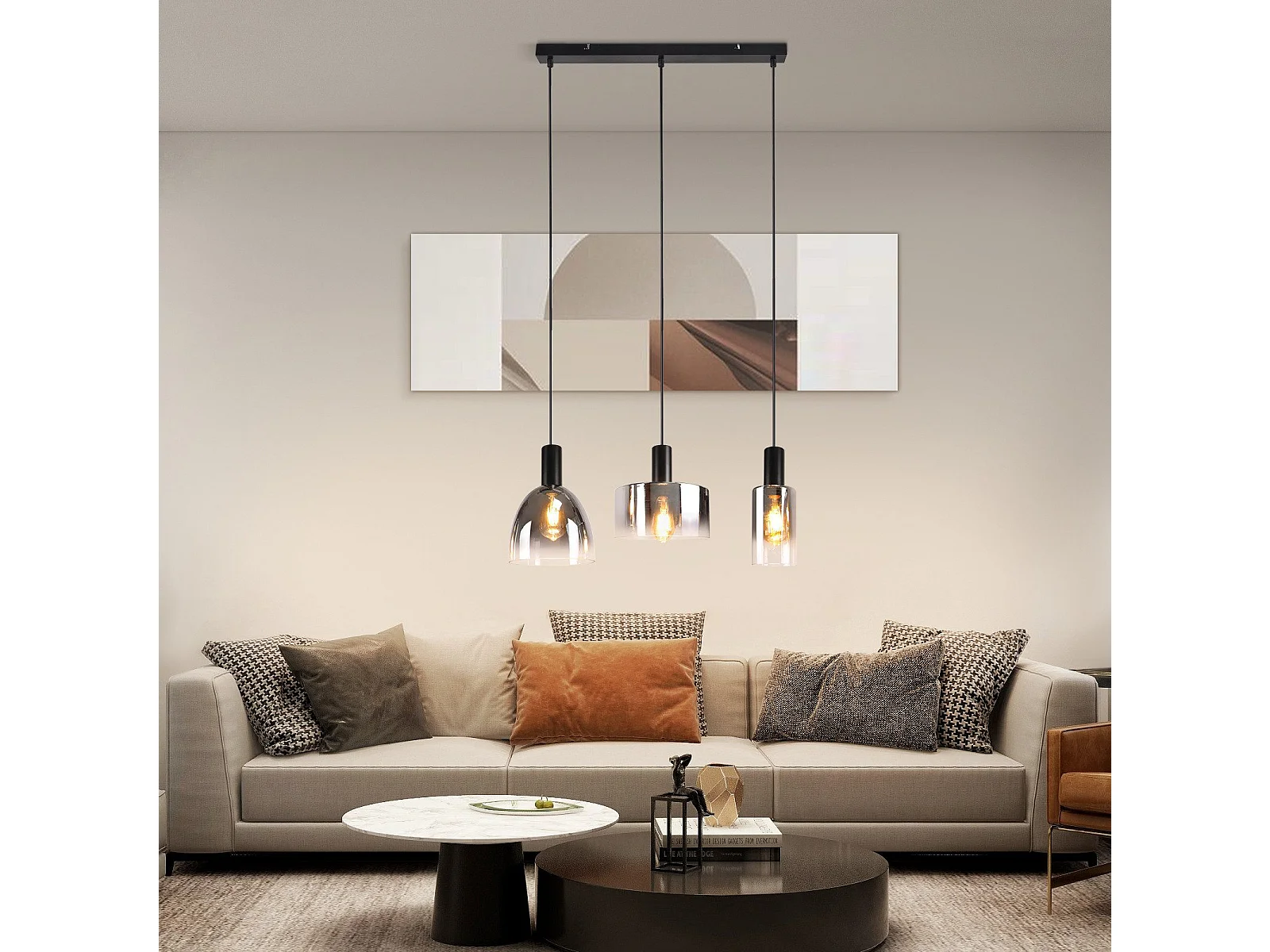 Lampe à Suspension Pour Table à Manger Vintage En Verre Gris Fumé E27 Réglable En Hauteur Pour Salon