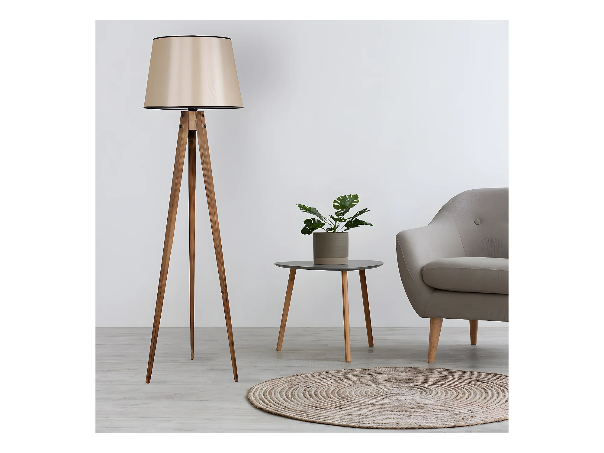 Lampe avec trépied en bois Vanta et abat-jour en tissu H160cm 1xE27 - Marron