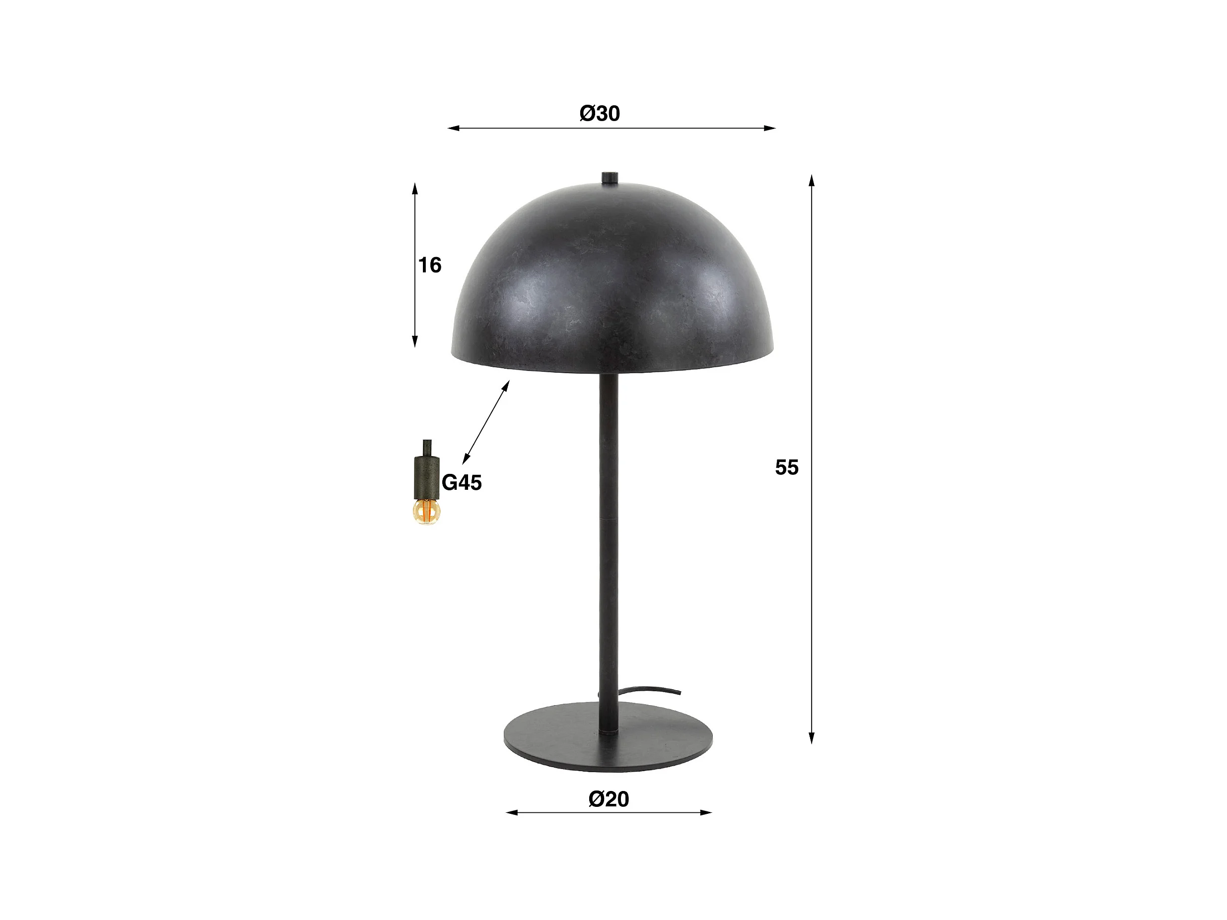 Lampe à poser métal noir chromé/gunmetal, 1x E27