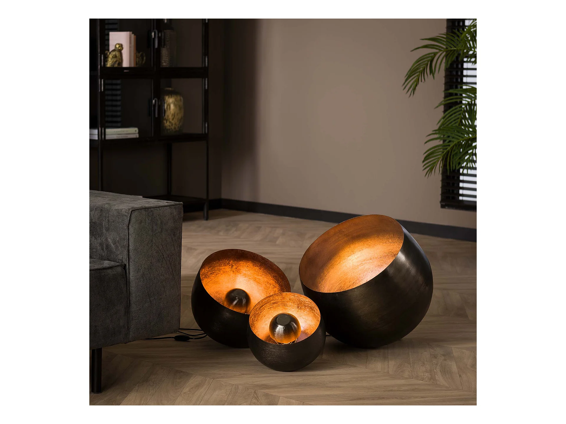 Lampe de table Basket L - Ø36 Ronde - Noir/Gris