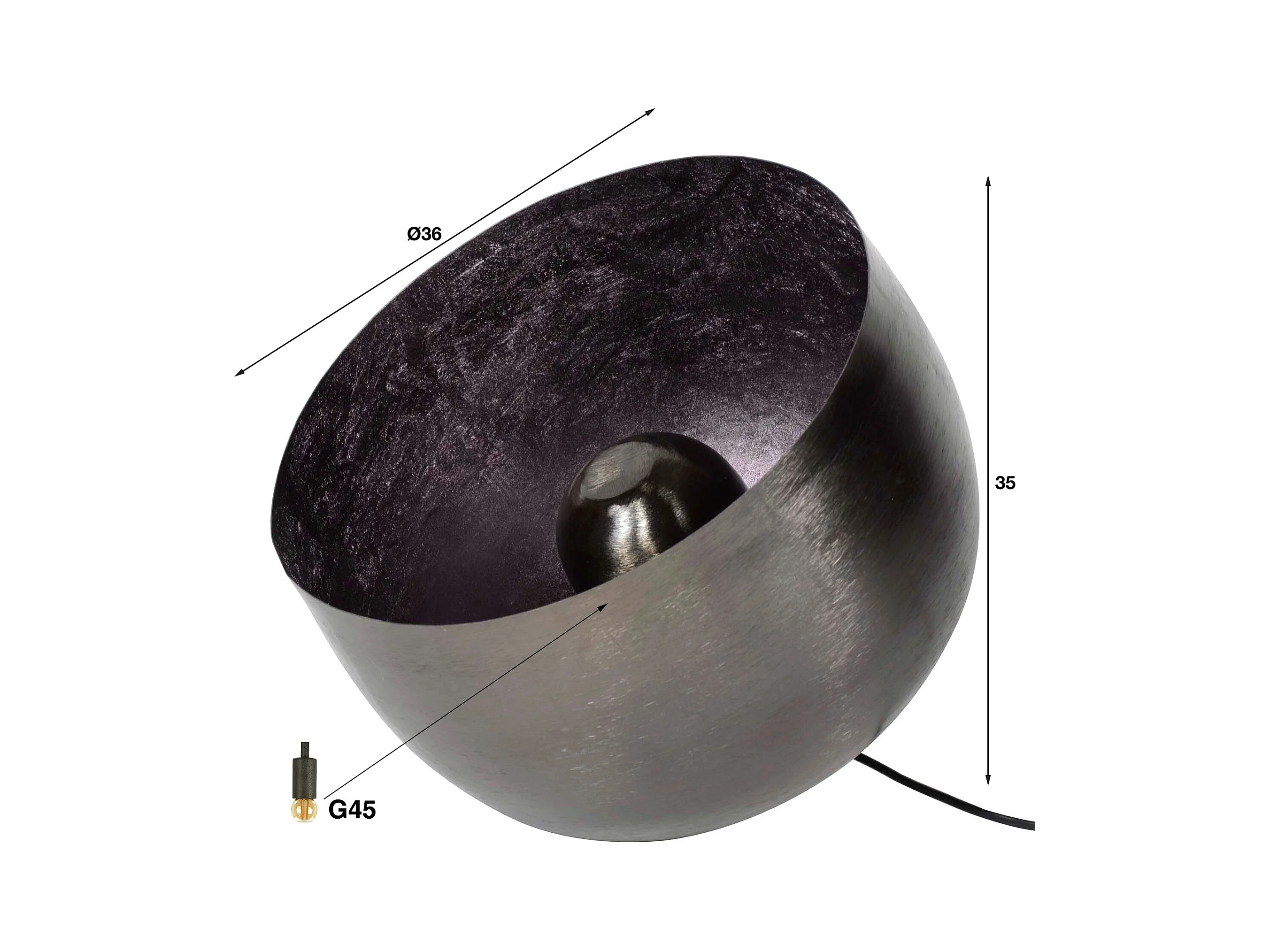 Lampe à poser métal noir mat, 1x E27