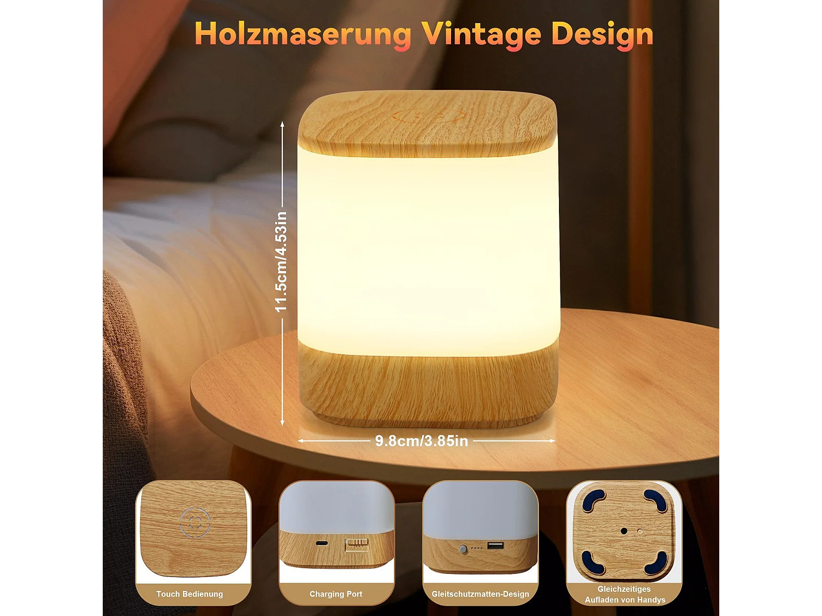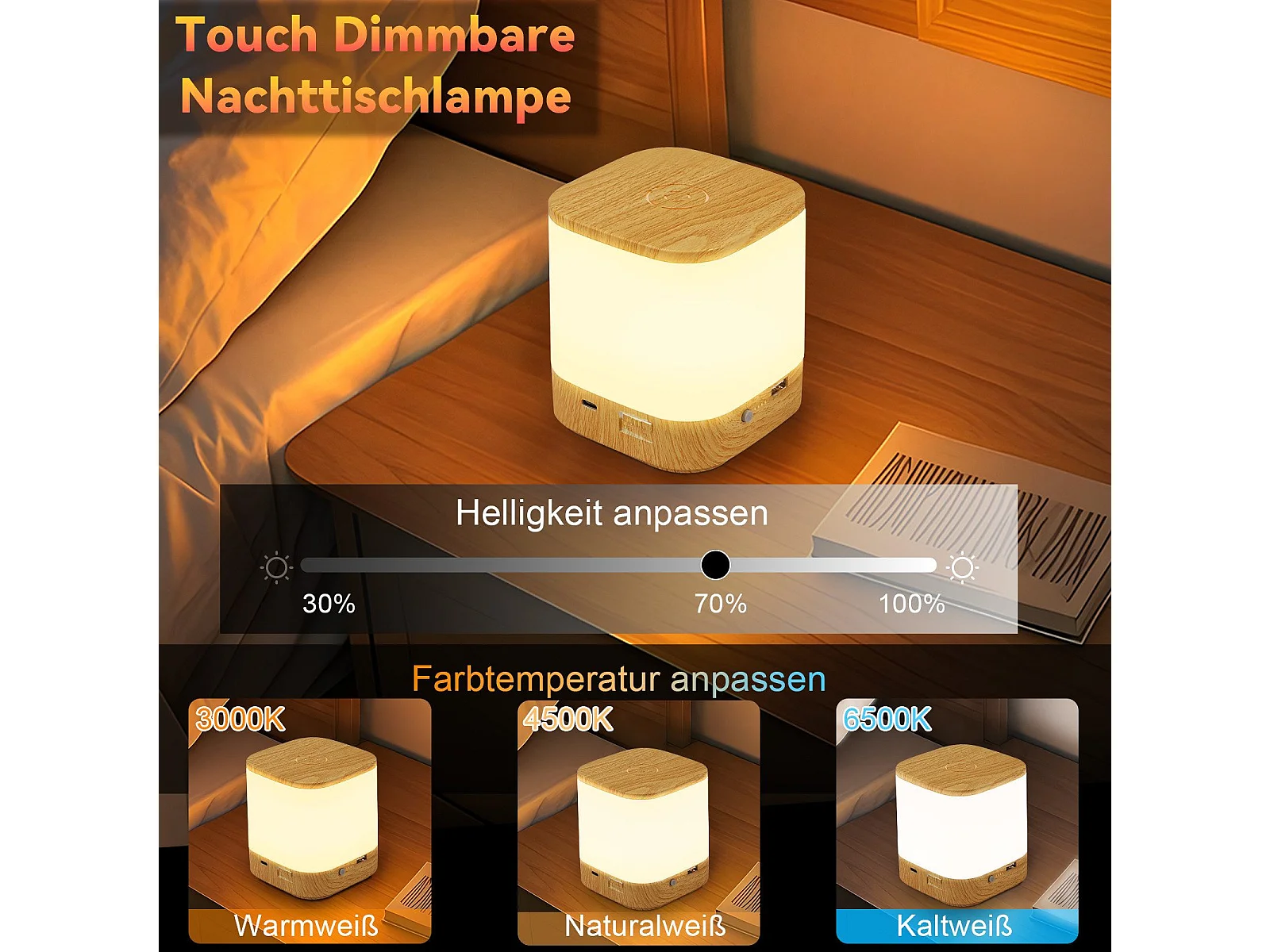 Lampe de table LED NETTLIFE avec 3 températures de couleur, lampe de chevet, batterie 3600 mAh, USB