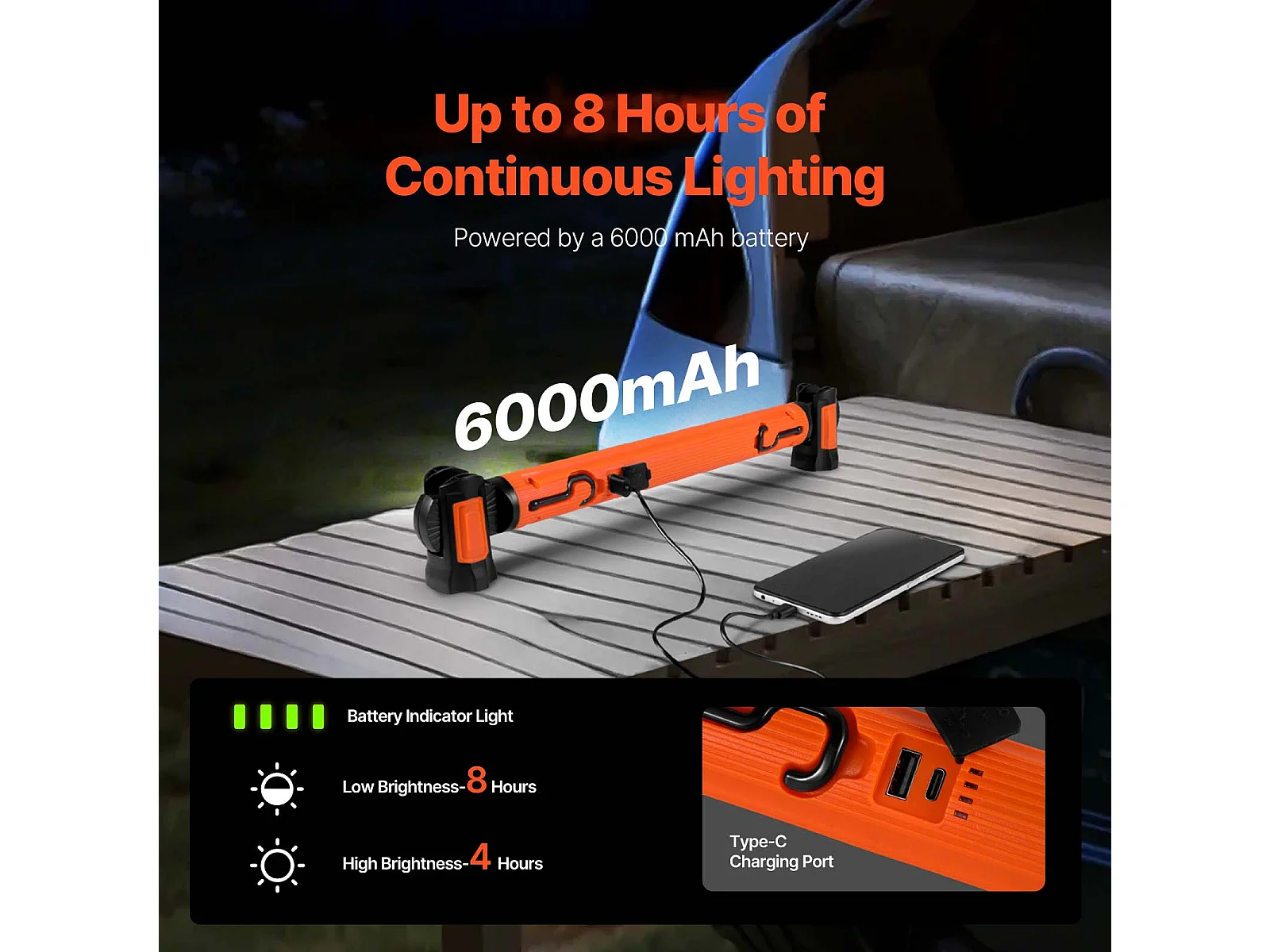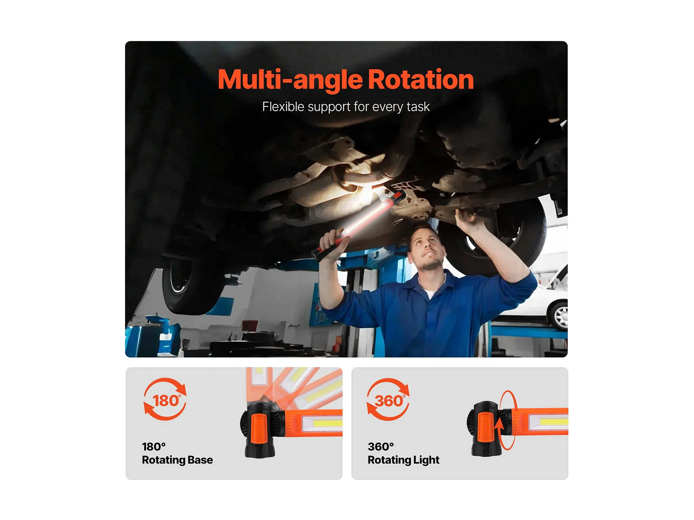 Lampe de Travail Magnétique sous Capot SucceBuy, 1250 lm 6000 mAh, Rechargeable, pour Garage, Atelier ou Situations d'Urgence