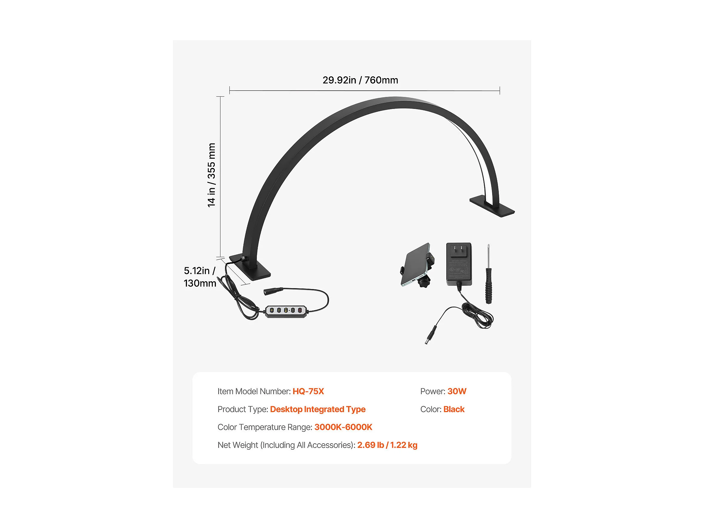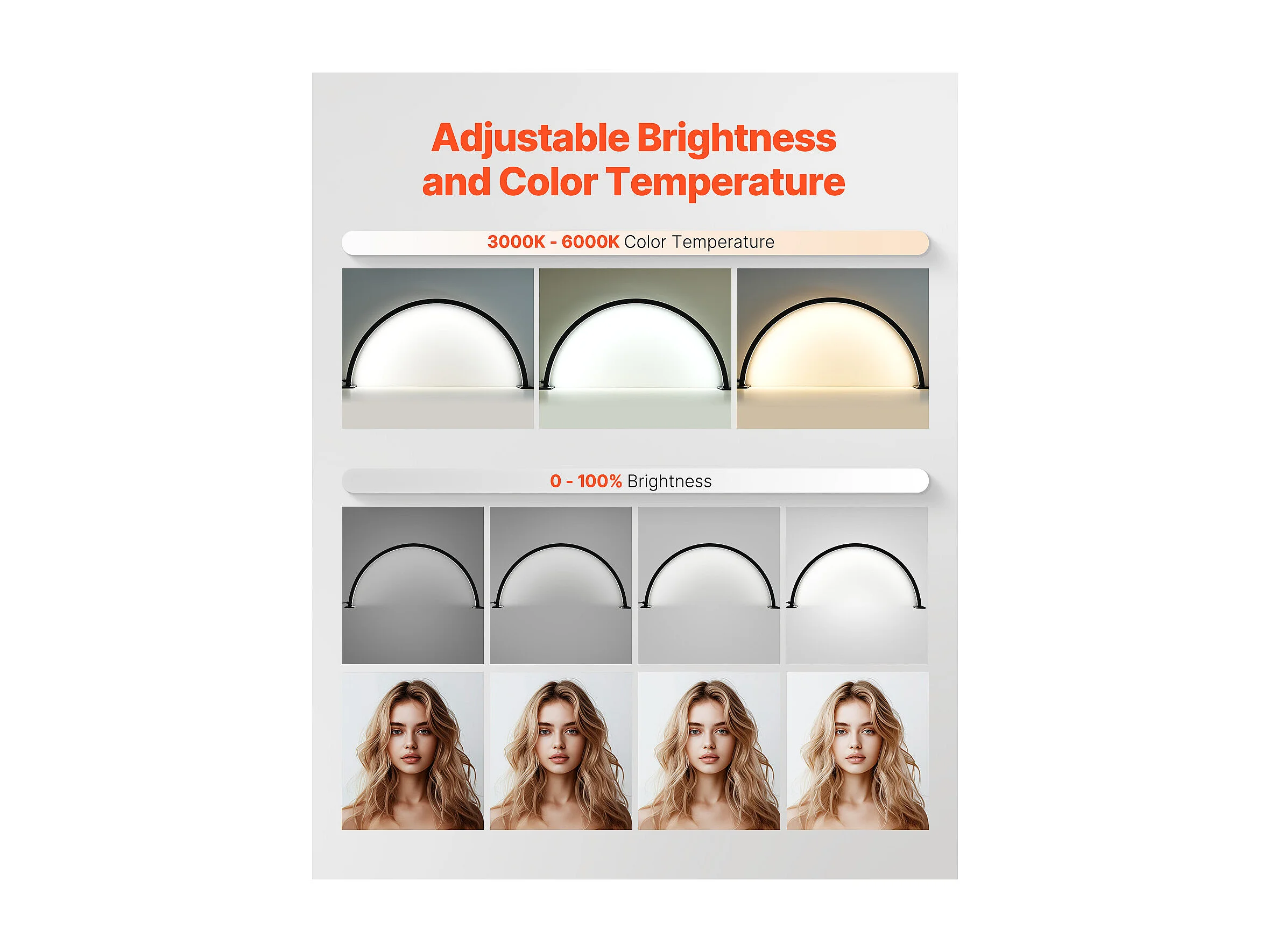 Lampe d’Esthéticienne, SucceBuy, Lampe de Bureau 30 W en Forme de Demi-lune avec Support pour Téléphone - Luminosité Réglable