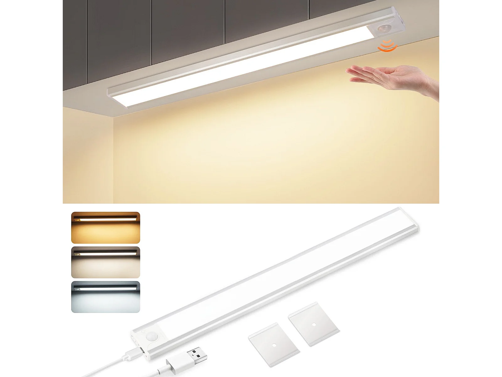 Lampe LED sous meuble NETTLIFE avec détecteur de mouvement, rechargeable par USB, 1 500 mAh, idéale pour un placard, un couloir ou un placard
