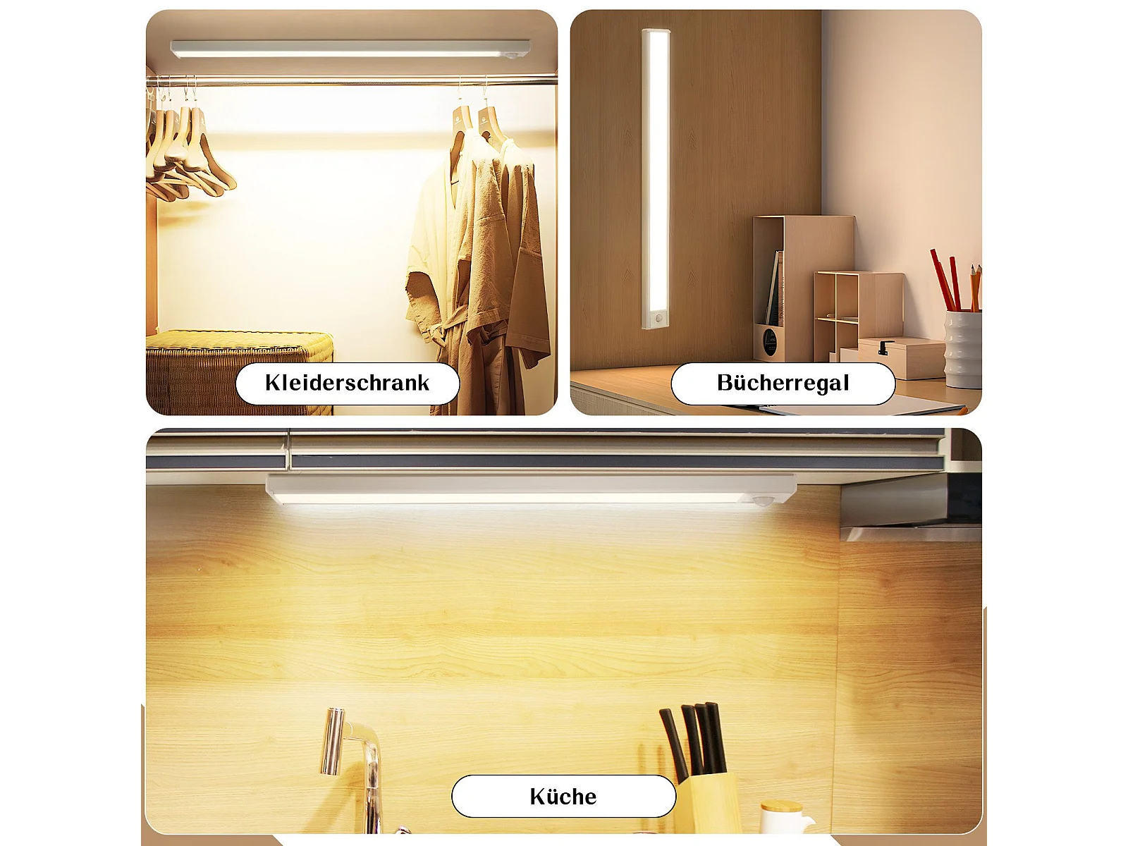 Lampe LED sous meuble NETTLIFE avec détecteur de mouvement, rechargeable par USB, 1 500 mAh, idéale pour un placard, un couloir ou un placard