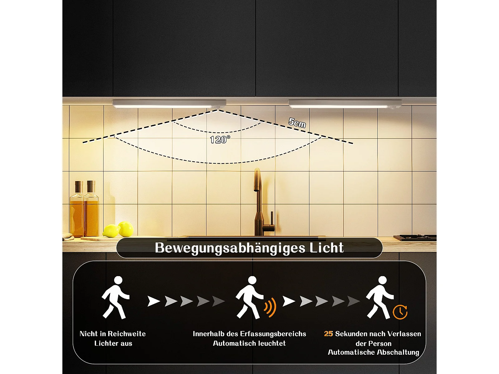 Lampe 2 x LED sous meuble NETTLIFE avec détecteur de mouvement, rechargeable par USB, 1 500 mAh, idéale pour un placard, un couloir ou un placard