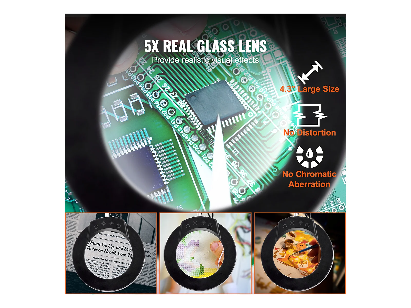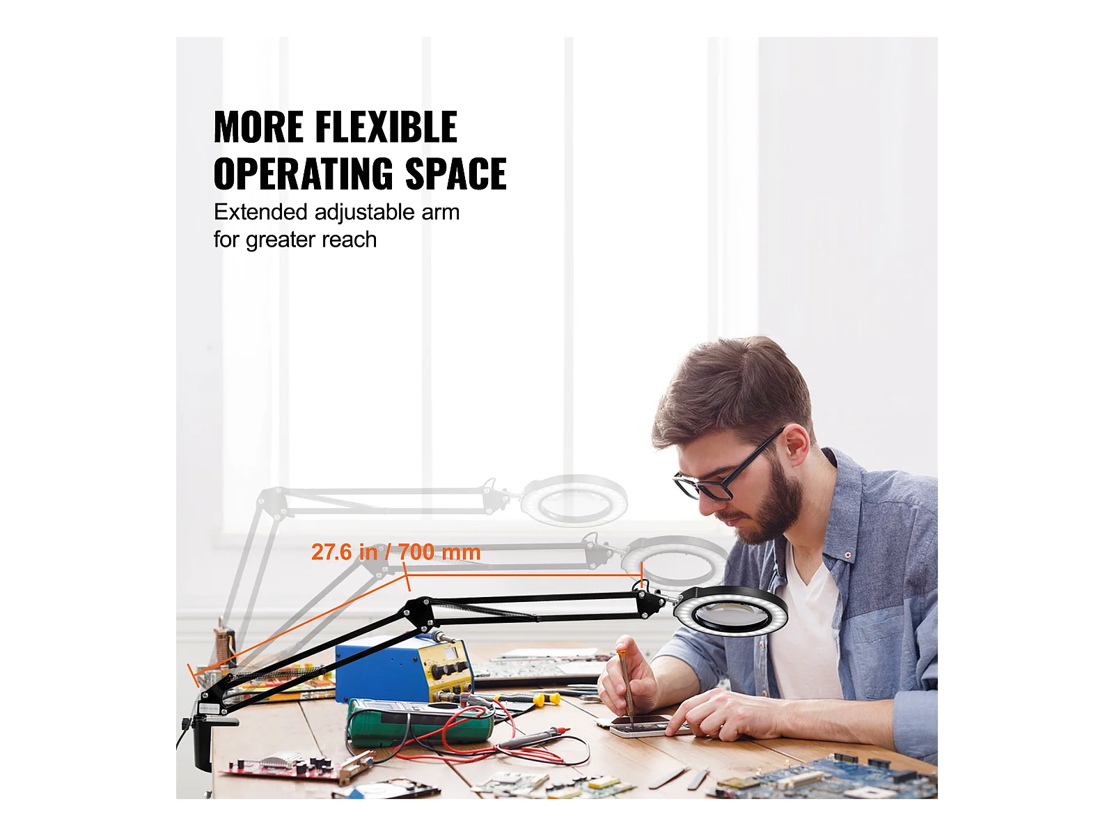 Lampe de bureau Lentille de 11 cm, Lampe Loupe SucceBuy 5X avec Lumière et Base, 5 Options de Couleur