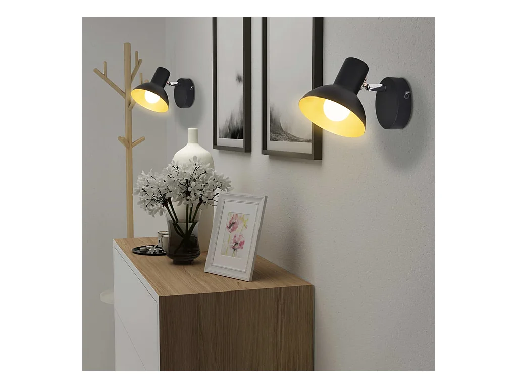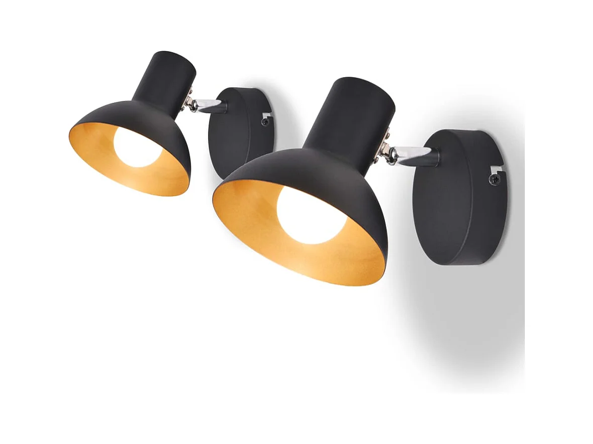 Lampe murale 2 pcs pour 2 ampoules E27 Noir et doré FR692126