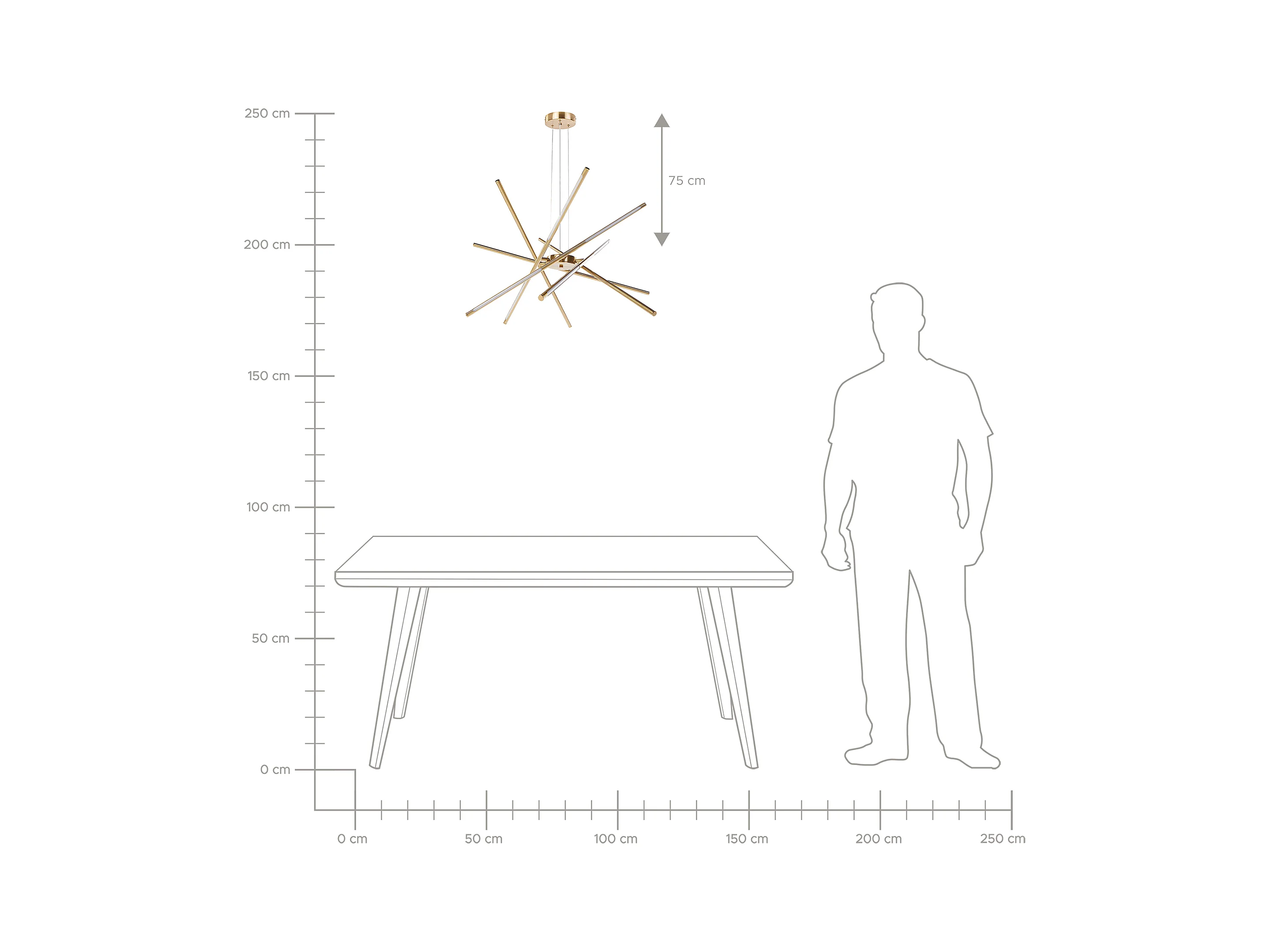 Dafne - Suspension LED Or 7W 3000K IP20 - Plafonnier LED design minimaliste en aluminium - Alimentation incluse - Max L. 165cm