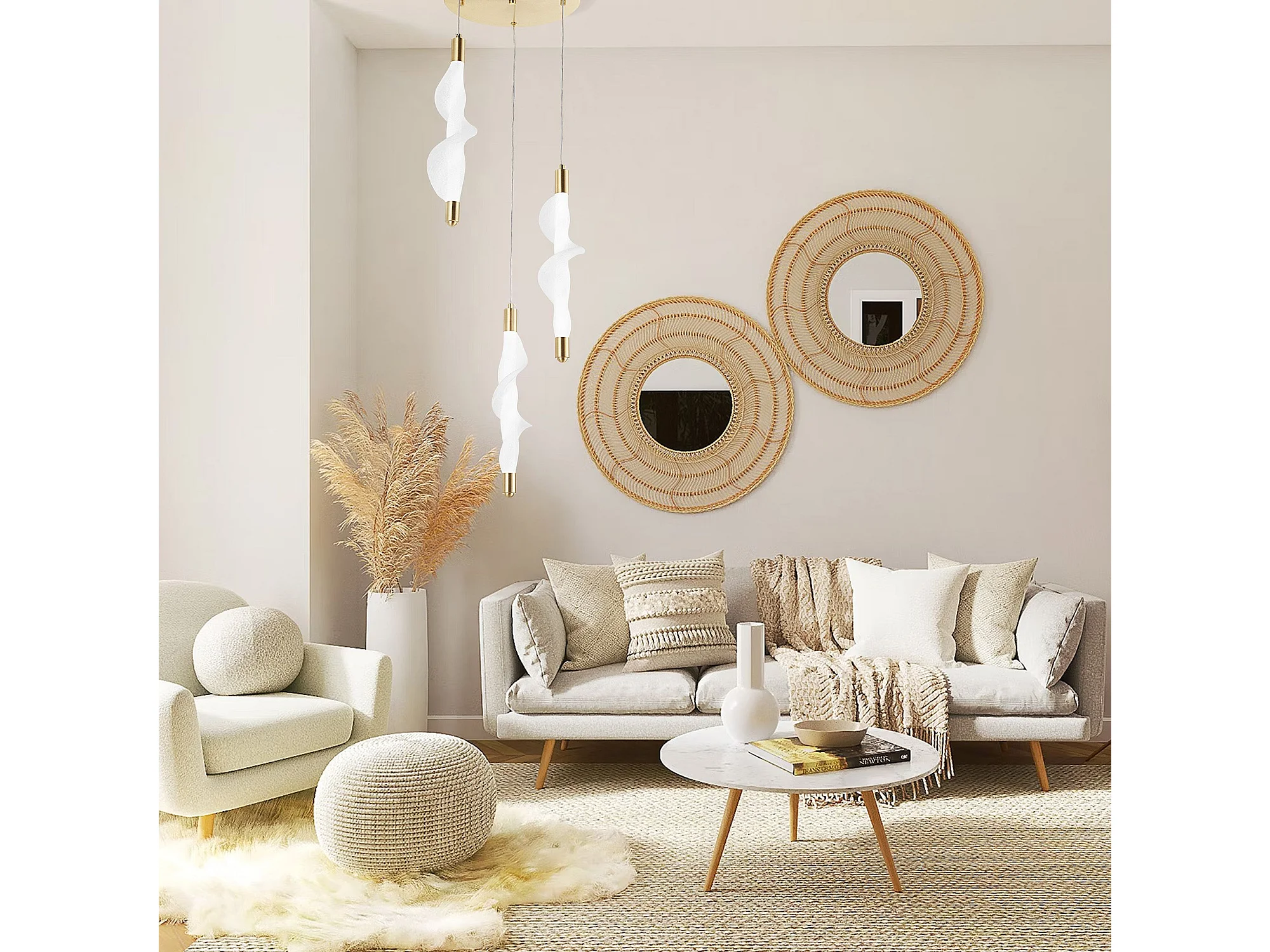 Suspension lustre et plafonnier blanc