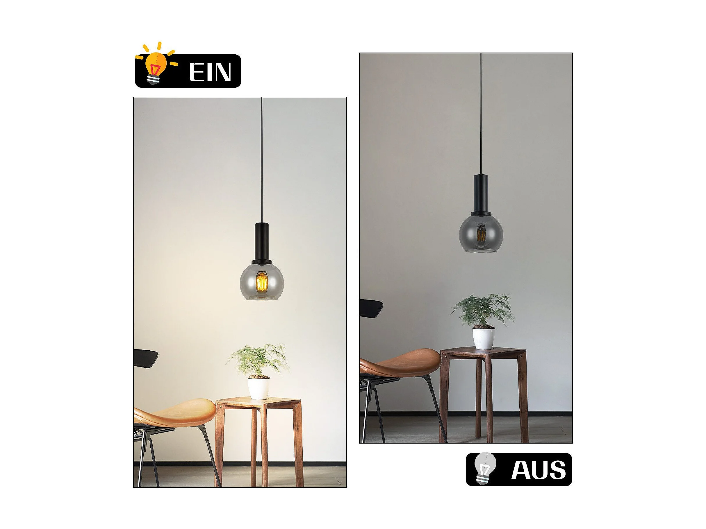 Lampe suspendue NETTLIFE vintage pour table à manger - Lampe suspendue 1 flamme en verre noir industrielle E27