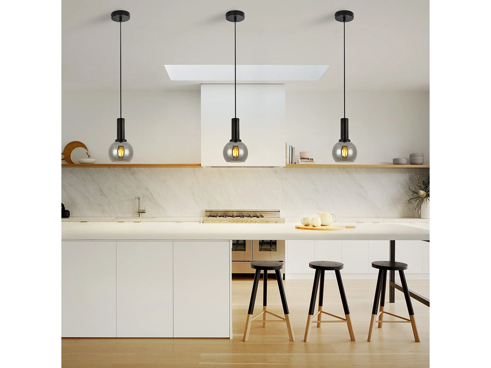 Lampe suspendue NETTLIFE pour table à manger suspension vintage en verre 1 flamme G9 noire réglable en hauteur
