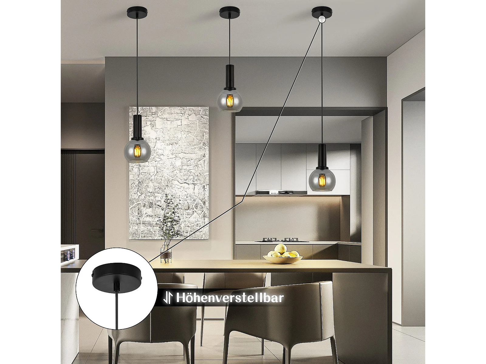 Suspension LED NETTLIFE pour salle à manger, intensité variable, noire, moderne, 50 W, 148,5 cm