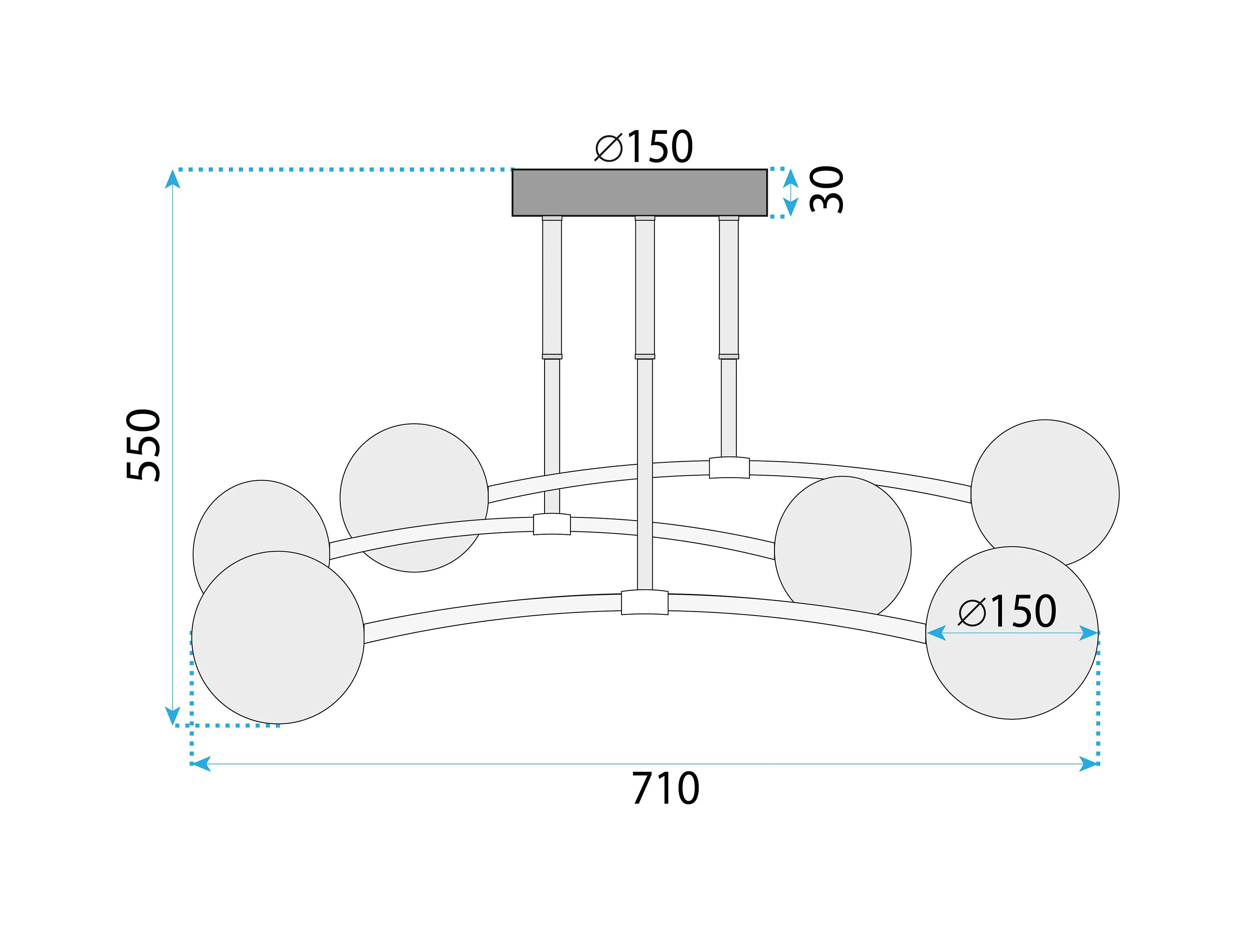 Fabian Suspension en fer laqué noir et doré 6 lumières L.101 X 16 BL293-6-OR