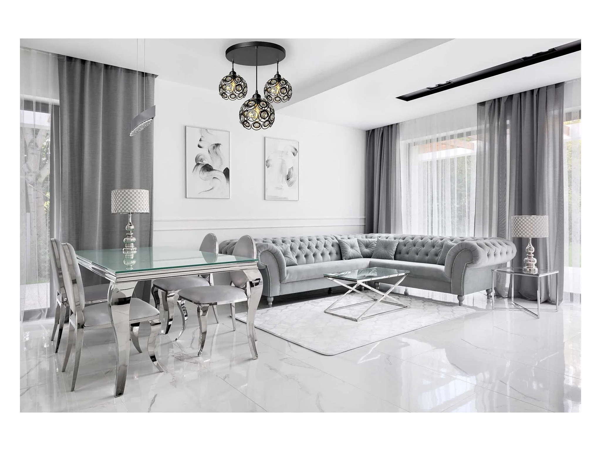 Suspension et lustre transparent