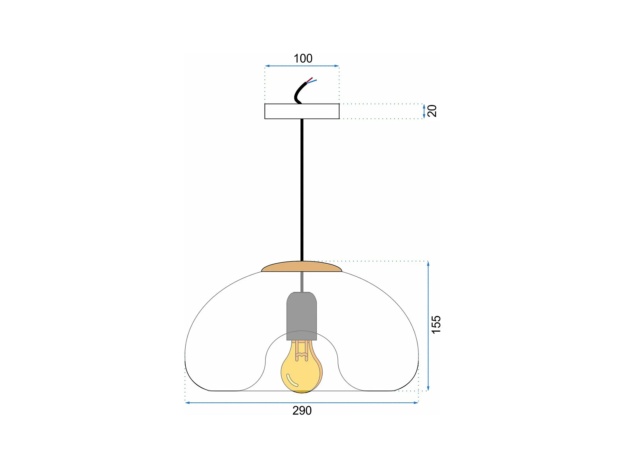 Olaf Suspension en fer bronzé 1 lumière avec sphère dm.20 130 d.20 BL294-S1-NR
