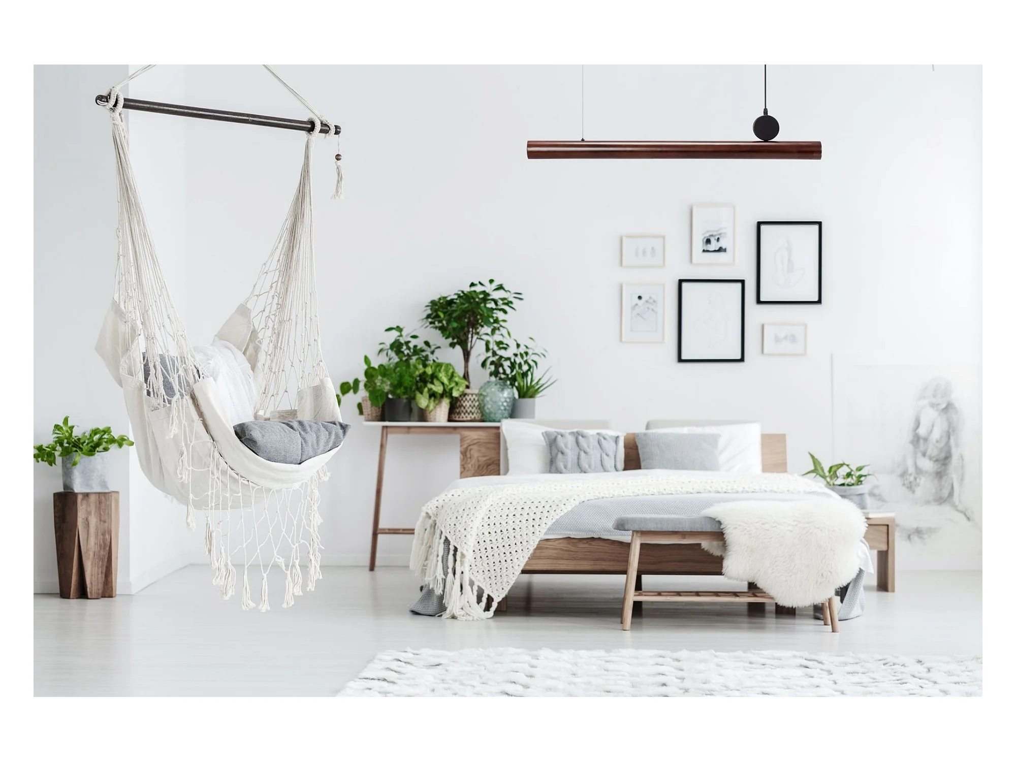 Suspension et lustre tissu blanc