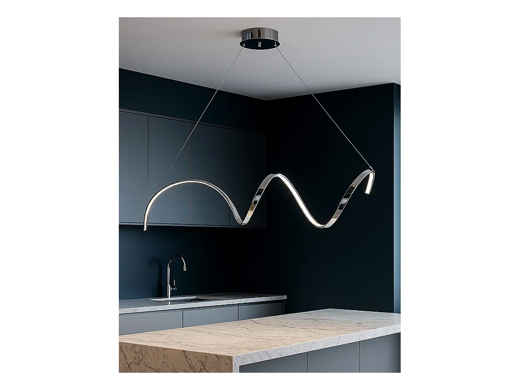 Malena Suspension en métal et aluminium chromé poli avec LED intégrée et câbles électriques réglables 115 d.50 BL247-SCR