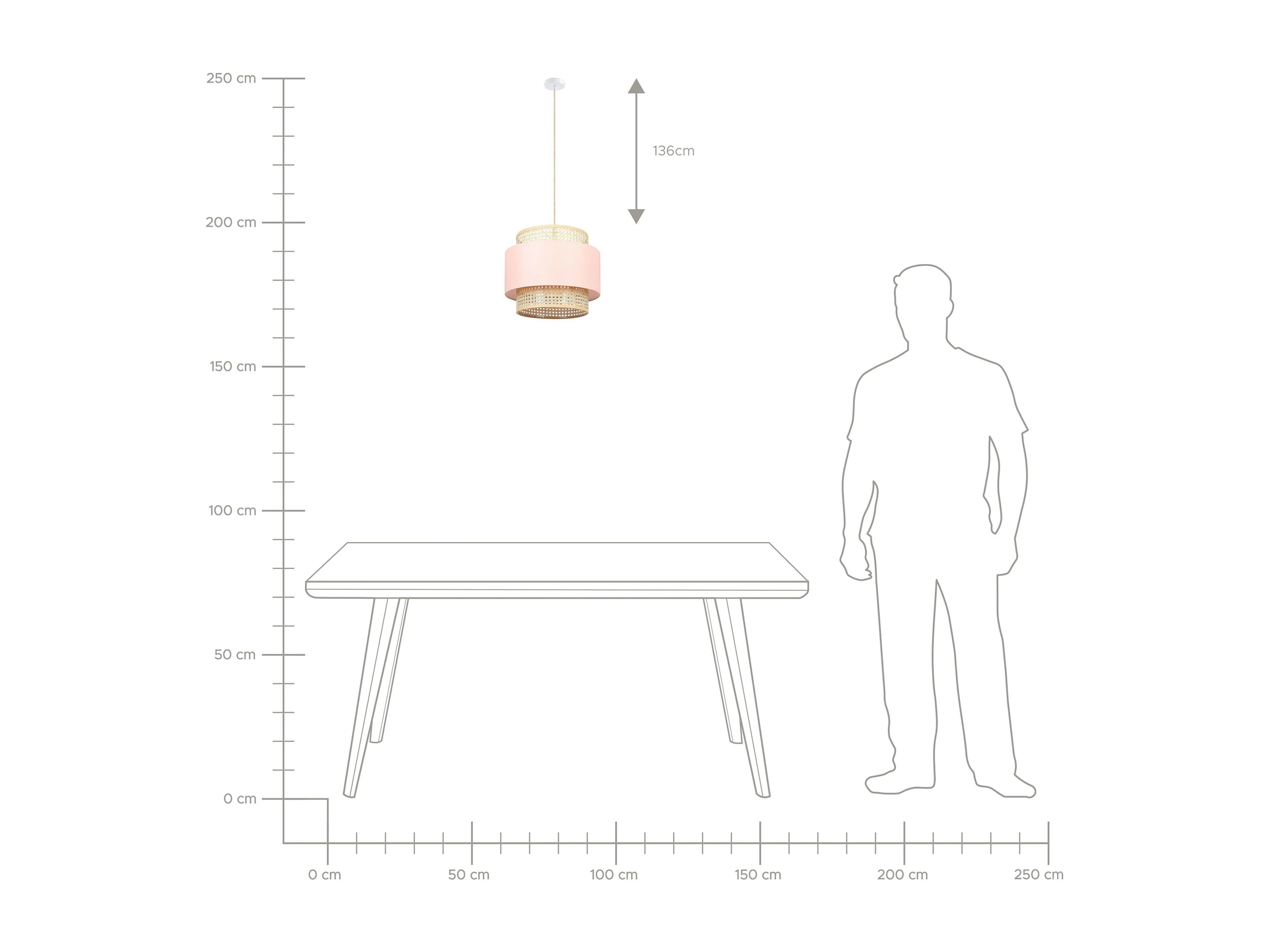 Lampe suspension YUMURI Rotin Rose pêche