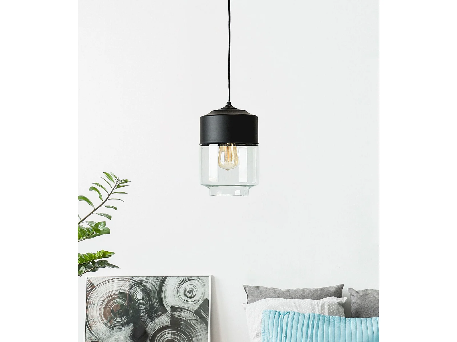 Suspension lustre et plafonnier noir