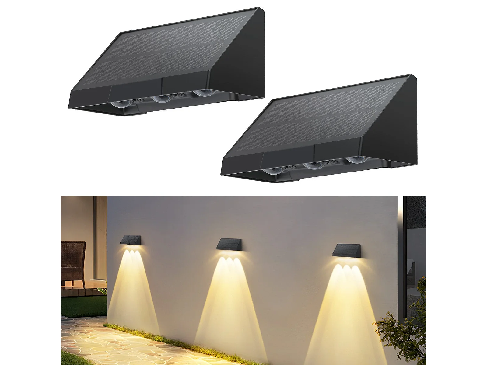 Lampes solaires d'extérieur NETTLIFE - 2 appliques murales solaires d'extérieur à LED, blanc chaud 3 000 K