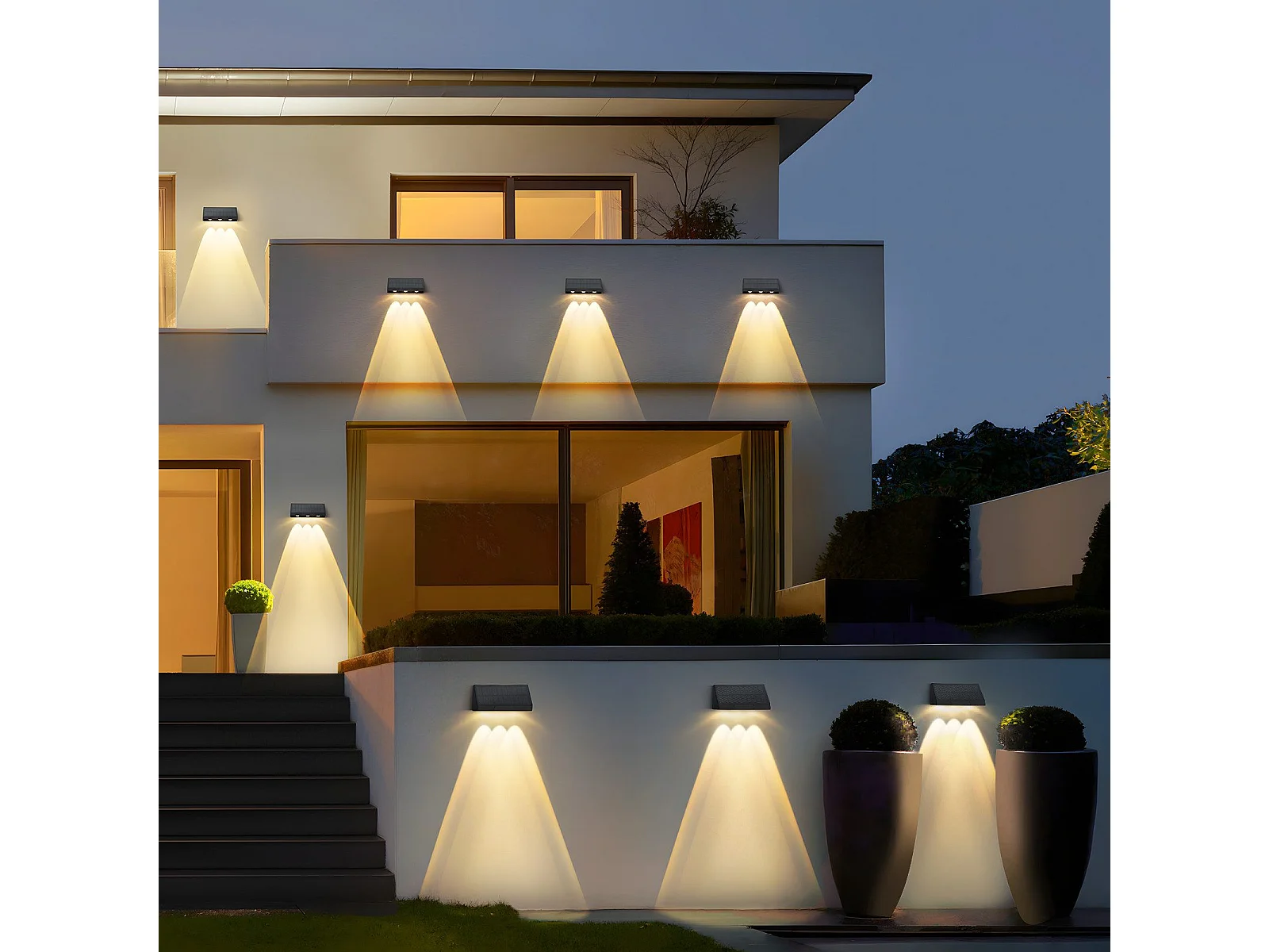 Lampes solaires NETTLIFE pour mur extérieur - 2 appliques solaires extérieures, éclairage extérieur, lumière blanche chaude