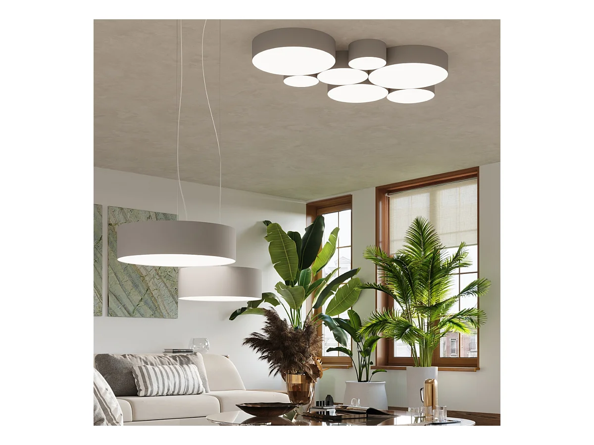 Lampes suspendues Cercle minimaliste en PVC - 2 sources lumineuses 3000K - L.35 x H.111 cm - gris