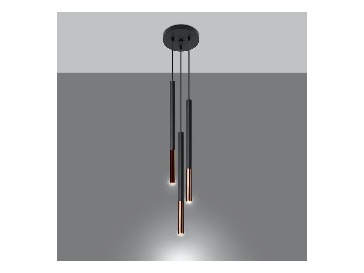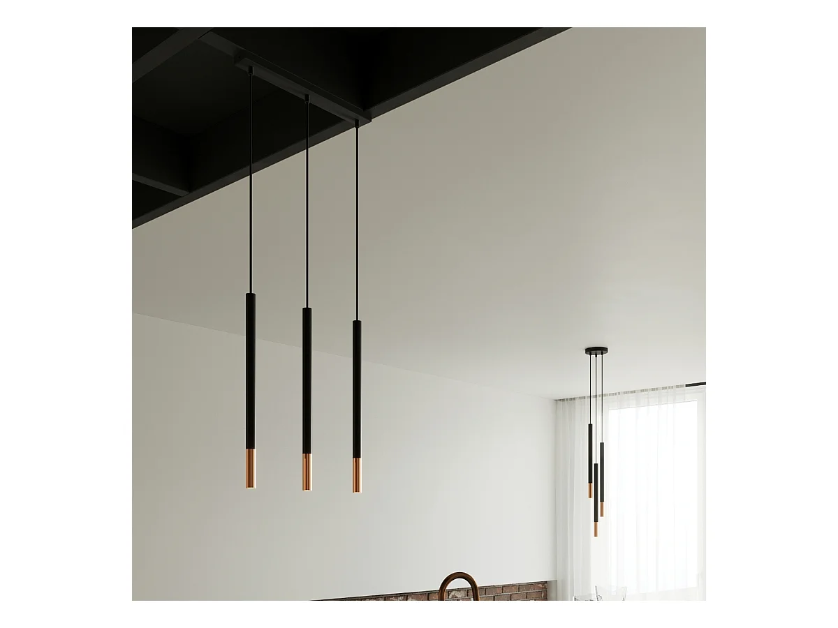 Lampes suspendues Flar moderne en acier - 3 sources lumineuses 3000K - L.20 x H.90 cm - noir/cuivre