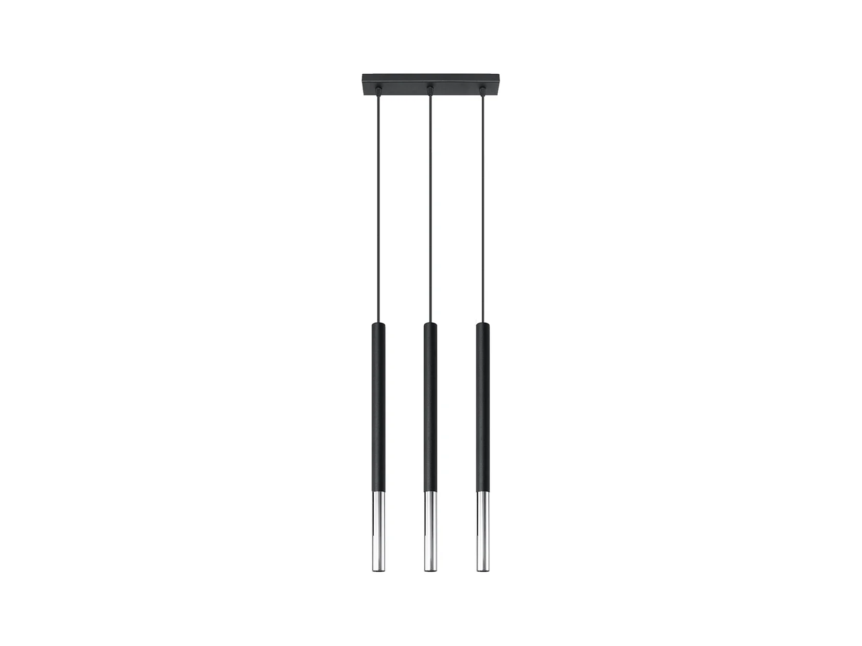 Lampes suspendues Flar moderne en acier - 3 sources lumineuses 3000K - L.30 x H.90 cm - noir/chromé