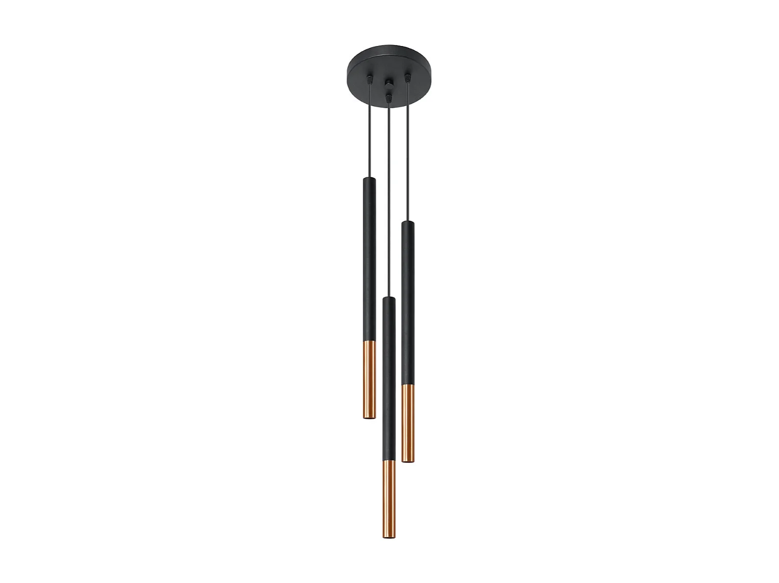 Lampes suspendues Flar moderne en acier - 3 sources lumineuses 4000K - L.20 x H.90 cm - noir/cuivre