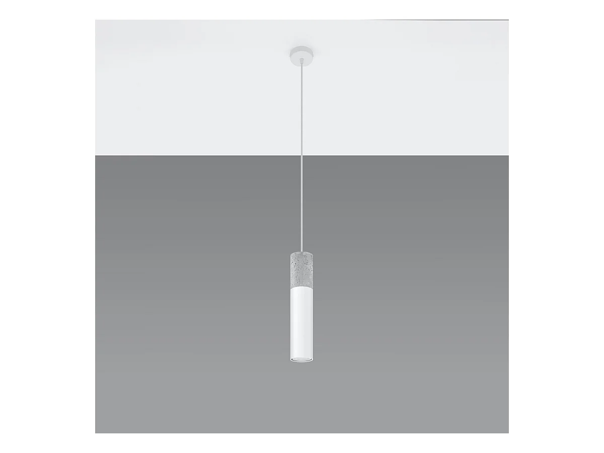 Lampes suspendues Lume moderne en acier/béton - 1 sources lumineuses 4000K - L.8 x H.105 cm - blanc/gris