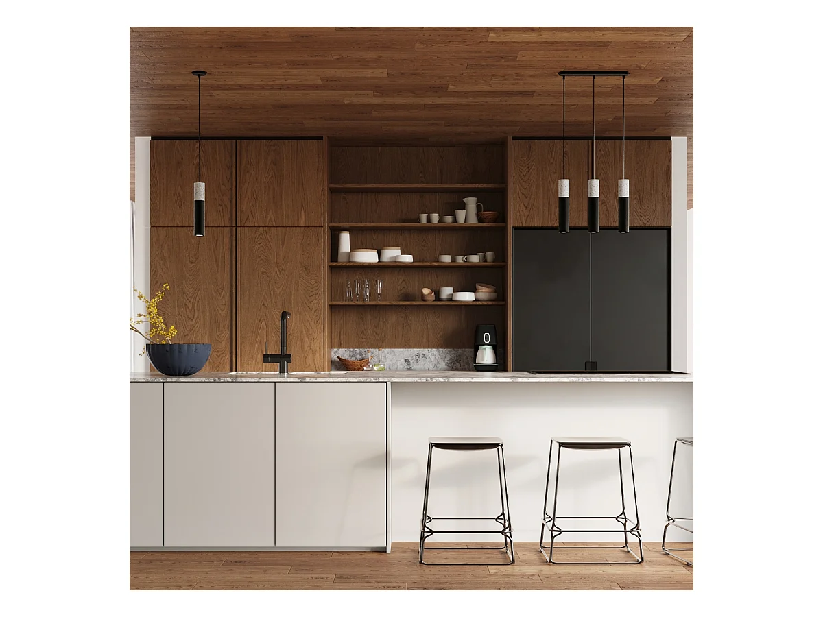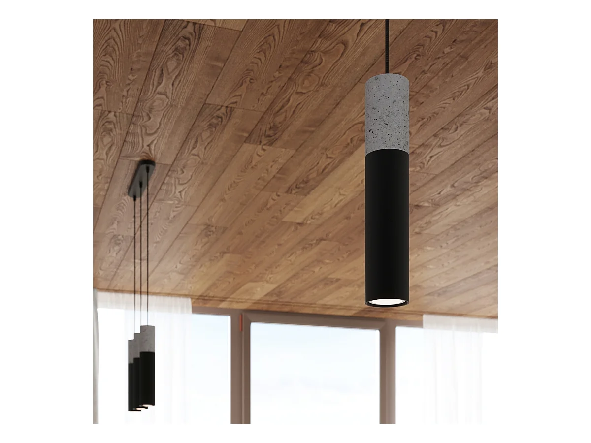 Lampes suspendues Lume moderne en acier/béton - 1 sources lumineuses 4000K - L.8 x H.105 cm - gris-noir