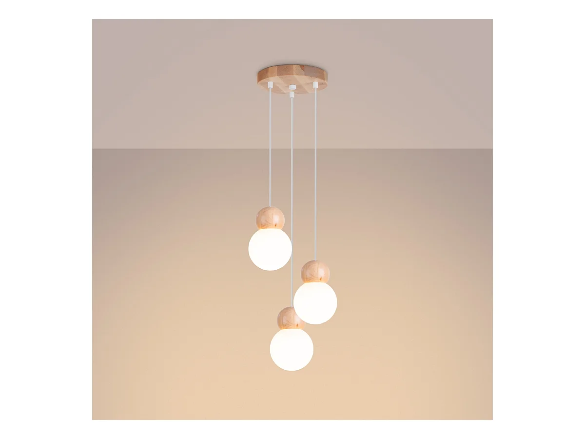 Lampes Suspendues Pekka Scandinave En Verre/Bois - 3 Sources Lumineuses - L.31 X H.124 Cm - Blanc/Bois Naturel