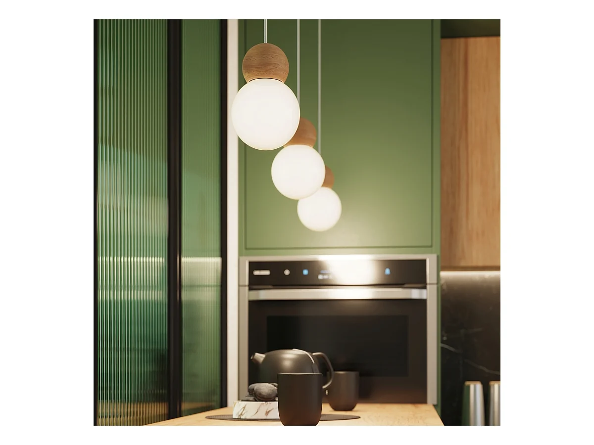 Lampes Suspendues Pekka Scandinave En Verre/Bois - 1 Sources Lumineuses - L.11 X H.124 Cm - Blanc/Bois Naturel