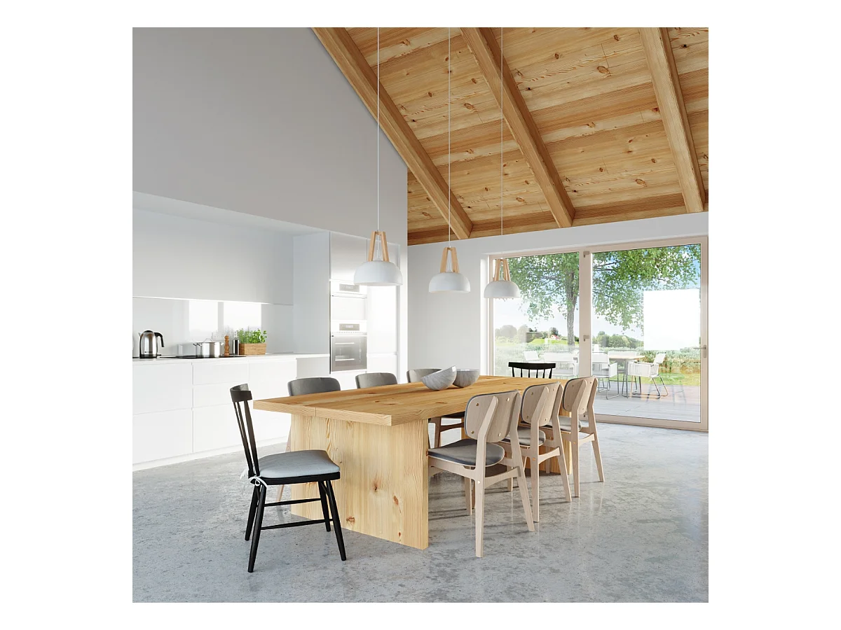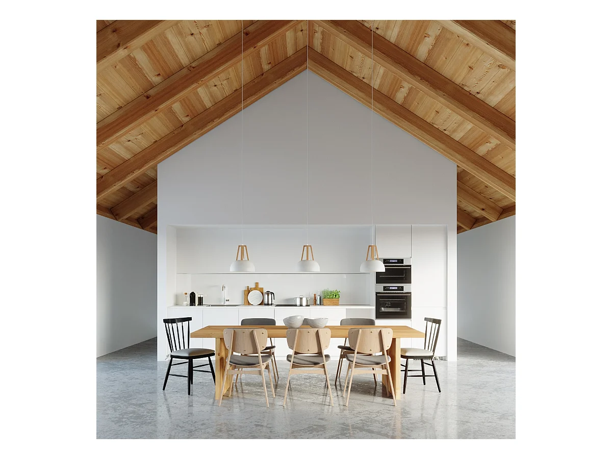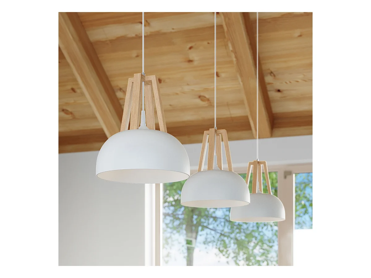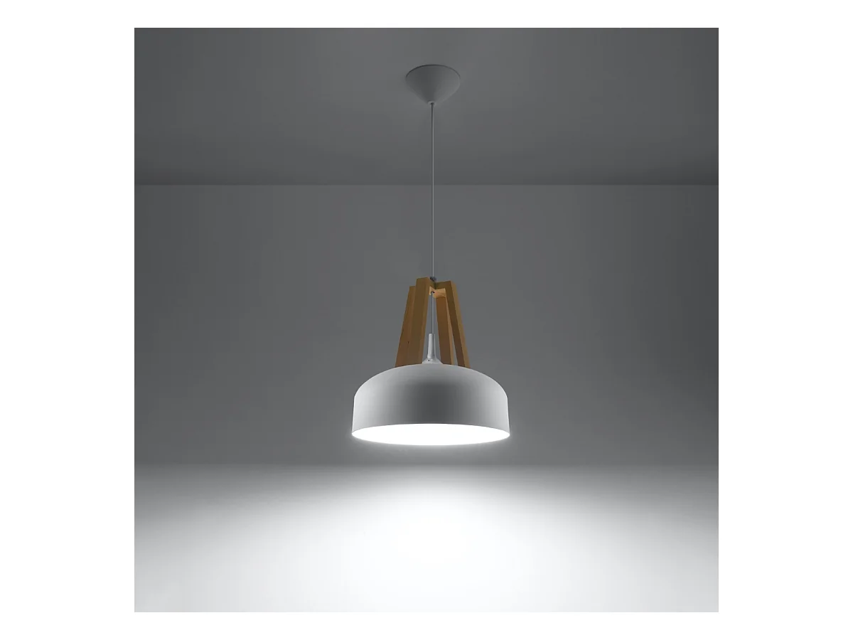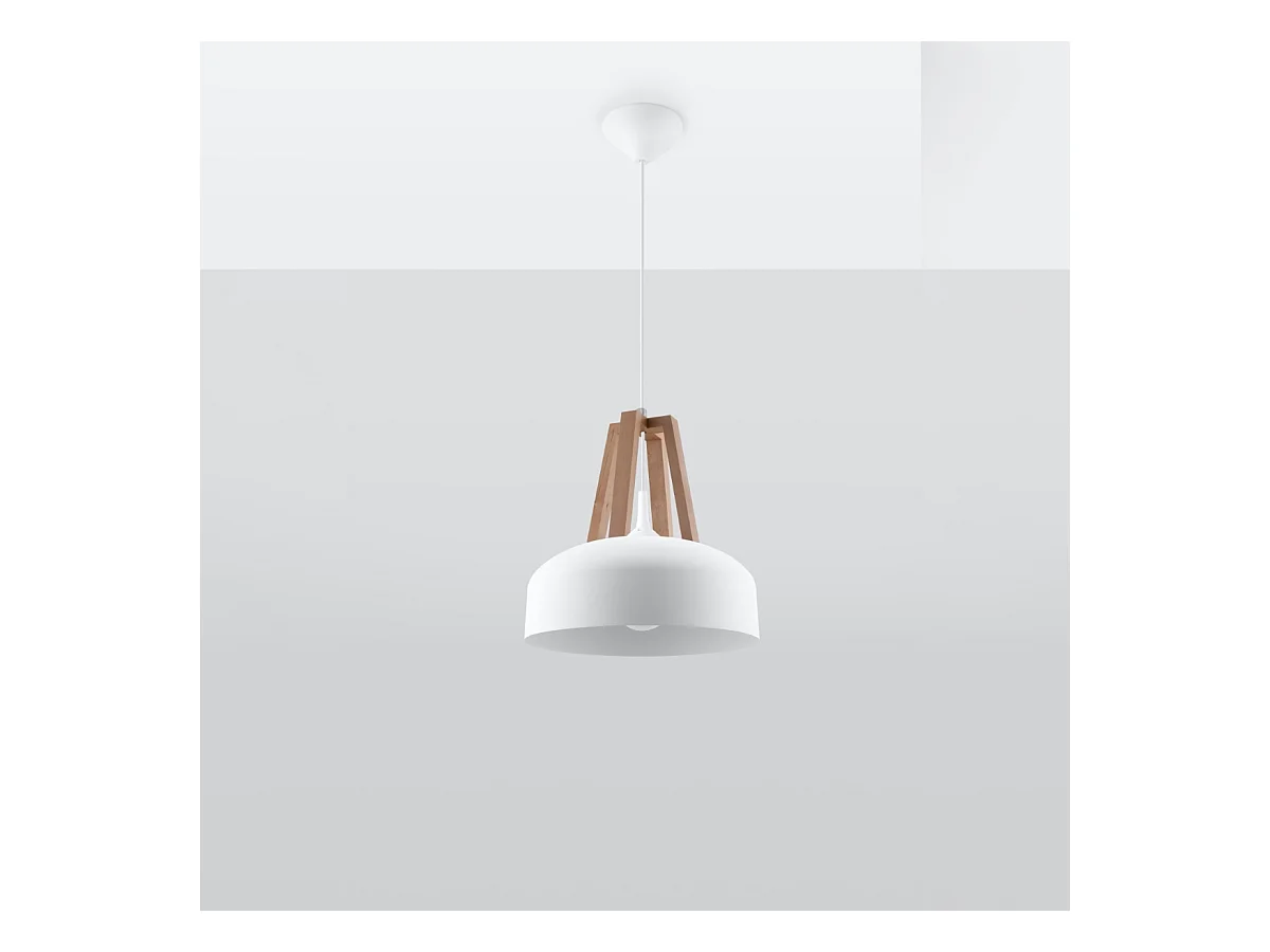 Lampes suspendues Solivo moderne en acier/bois - 1 sources lumineuses 4000K - L.30 x H.85 cm - blanc/bois naturel